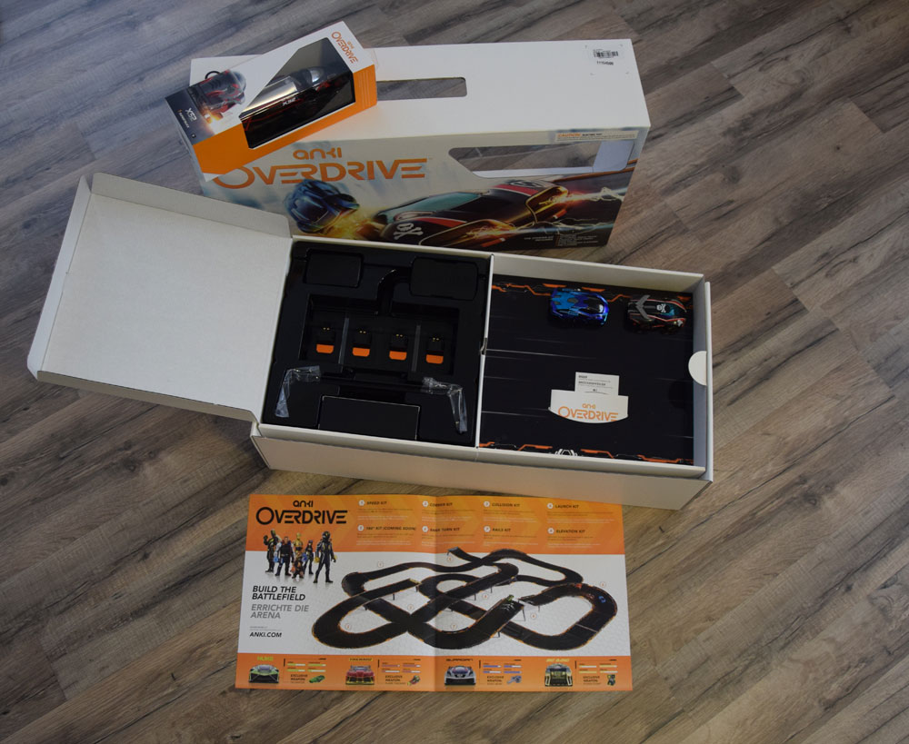 Anki ist ein Spezialist für Robotik und Künstliche Intelligenz. Zum Start in die Technik-Welt hat sich das Team bereits 2007 überlegt Künstliche Intelligenz und Roboterautos zusammenzuführen. Nun neun Jahre später ist daraus Anki Overdrive entsprungen. Hierbei handelt es sich um eine modulare Spielzeug-Rennstrecke, welche Fahrzeuge befahren, die mit Infrarotsensoren gelenkt werden. Schienen sucht man vergebens und auch zur Steuerung der neuen Spielzeuggeneration müssen keine physischen Tasten mehr gedrückt werden. Wir haben uns das Highlight von der WWDC 2013 nun in der erweiterten Form, zusammen mit den neusten Supertrucks, einmal genauer angeschaut und für euch getestet. Über Anki und die Zukunft des intelligenten Spielzeugs „Wir stellen Produkte her, die ihre Position in der Umgebung selbstständig bestimmen und sich präzise fortbewegen können.“, erklärt Boris Sofman, der Mitgründer von Anki. „Wir wollten Robotik und Künstliche Intelligenz in Produkte für Endverbraucher implementieren.“ fügt Hanns Tappeiner, ebenfalls Mitgründer von Anki, hinzu. Seit 2007 sind die Entwickler und Gründer von Anki dabei, ihre Systeme weiterzuentwickeln. Zum Start von Anki wussten die Gründer bereits, dass dem Verbraucher mehrere Roboter zur Verfügung gestellt werden müssten, die einzeln nicht wesentlich intelligent sind. Zusammen in einem System also im Schwarm, ergibt das Ganze dann allerdings ein hochintelligentes Gesamtwerk. „Wenn man den gegenwärtigen Stand Künstlicher Intelligenz betrachtet und sich anschaut, was wir damit noch erreichen wollen, haben wir gerade erst an der Oberfläche gekratzt. Es ist unser Ziel das Unternehmen Anki als Vehikel für weitere, noch hochentwickeltere, Projekte im Bereich der Robotik zu nutzen. Wenn wir uns heute die Welt in fünf Jahren vorstellen, dann könnte die Lage eine völlig andere sein. Plötzlich können wir Dinge tun, die vorher unmöglich waren. Und das ist genau die Position, in der wir uns bewegen wollen.“, so Sofman weiter. Features im Überblick Bis zu 4 Spieler Kein Schienensystem Autos fahren frei auf der Bahn Spiele gegen Freunde oder die Künstliche Intelligenz Verschiedene Waffen- und Waffenabwehrsysteme Lipo-Akku hält im Rennen knapp 25 Minuten und ist in 5 Minuten wieder voll aufgeladen Fahrzeuge sind mit einem ARM Cortex-M0-Microcontroller und Sensorik ausgestattet Verbindung zwischen Smartphone und Autos wird per Bluetooth LE hergestellt (Low Energy) Gratis App für iOS und Android Jedes Fahrzeug verfügt über eine Kamera, die nach vorn gerichtet ist Rennstrecke aufbauen, Autos aufsetzen, App starten und Go Im Starterset des Anki Overdrive findet ihr zunächst zehn Streckenelemente wieder. Mit diese könnt ihr bis zu acht verschiedene Strecken bauen. Da alle Teile aus der Anki-Schmiede miteinander kompatibel und kombinierbar sind, können die Strecken nach der Zeit auch aus und umgebaut werden. Das sorgt für eine Menge Flexibilität. Der Aufbau der Strecke ist sehr einfach und binnen weniger Minuten erledigt. Dabei werden die Teile unkompliziert ineinander gesteckt und fertig ist die Laube. Die schwarz lackierten Abschnitte sind biegsam. Hier können problemlos Sprungschanzen, Brücken oder Kurvenerhöhungen installiert werden. Festgehalten werden die Teile von Magnetleisten, die auch der Beanspruchung durch die Anki-Flitzer gerecht werden. Zwei Supercars liegen dem Starterset bei, wir haben oben drauf noch einen X52 Supertruck erhalten. An dieser Stelle sei schonmal gesagt, dass immer nur ein Supertruck genutzt werden kann. Zwei der neuen Giganten zur gleichen Zeit zu steuern, ist nicht möglich. Ist die Strecke aufgebaut, müssten nun auch die entsprechenden Apps auf das Smartphone oder Tablet geladen werden. Die Links für die kostenlosen Downloads findet ihr oben in der Feature-Liste. Über die Apps können die Autos auch final gesteuert werden. Bevor es richtig losgehen kann, müssen die Mini-Autos zunächst die Strecke scannen. Dazu wird kurz der Kurs abgefahren. Ist auch dieser kleine Zwischenschritt erledigt, kann das Rennen starten. Die Fahrzeuge sind unterschiedlich schnell und haben unterschiedlich starke Waffen. Das sorgt von Anfang an für spannende Rennen. Weniger schnelle Autos, wie etwa Skull, haben stärkere Waffen. Bei Anki Overdrive fahren die Autos nicht nur einfach um die Wette, sondern sie können ihre Gegner aktiv daran hindern, zuerst die Ziellinie zu überfahren. Die Waffen werden über einen Schieberegler in der App aktiviert. Die Autos werden durch das Drehen des Smartphones jeweils nach links oder rechts gesteuert. Mit dem linken Daumen wird das Gaspedal betätigt und die Geschwindigkeit somit geregelt. Mit dem rechten Daumen kann gefeuert werden. Das geht ganz einfach. Aus den Smartphonelautsprecher entspringen ständig Sounds vom Fahrverhalten und den Schusssalven. Im Folgenden wollen wir euch einmal den Battle-Mode näher erläutern. Battle Mode: Die Zukunft des Battle-Racing Kämpfe gegen Mitspieler oder gegen die künstliche Intelligenz. Um die Gegner zu besiegen, steht ein virtuelles Waffenarsenal zur Verfügung. Neue Rennautos oder auch Trucks, werden jeweils auch mit neuen Waffen bestückt. So kann der Spieler beispielsweise vom Traktorstrahl Gebrauch machen. In der Kurve aktiviert, saugt sich der Verfolger wieder an den Gegner heran und kann wichtige Strecke gut machen. Ist die Angriffsdistanz erreicht, kann beispielsweise die Plasmakanone auf den Gegner abgefeuert werden. Sitzen die Strahlen, wird der Gegner sogar von der Strecke geschleudert. Und weiter gehts dann mit dem nächsten Ziel. Allerdings kann die zunächst günstige Position des Verfolgers auch schnell zu einer Gefahr werden. Hat der Verfolgte ein Ass im Ärmel, ist Vorsicht geboten. Dieser Bonus könnte etwa eine Miene sein die den Verfolger ganz schnell ins Schleudern bringen kann. Ein wenig erinnert das Ganze an die abegworfenen Bananen bei Mario Kart. Mehrspielermodus Ihr könnt Anki Overdrive allein 
