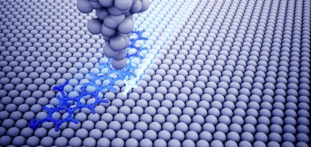 Nanotechnologie ist ein Gebiet, auf dem noch große Schritte gemacht werden können. In den letzten Jahren wurden in dem Bereich deutliche Fortschritte gemacht, aber von wissenschaftlichen Träumereien wie Nanofabriken sind wir noch weit entfernt. Ein Problem dabei ist, dass Nanomaschinen derzeit nur schwer gesteuert werden können. Forschern der Universität Graz ist es nun gelungen, ein Molekül zielgerichtet über eine längere Strecke hinweg zu einem Zielort zu transportieren. Bild: Leonhard Grill/ Universität Graz Nanofabriken als Zukunftsvision Nanomaschinen ist ein Technologie-Bereich, der die Zukunft maßgeblich mitprägen kann. Ob Nano-Autos, Miniatur-Motoren oder winzige Medizin-Roboter: Die Einsatzmöglichkeiten sind endlos. Mithilfe der kleinen, molekularen Roboter können auch sehr komplexe Bauteile im Nanoformat konstruiert werden. Auch ganze Fabriken im Kleinformat wären denkbar. Eine Voraussetzung dafür ist aber, die Nanomaschinen gezielt ansteuern zu können. Dazu gehört auch der Transport von Molekülen über eine längere Distanz hinweg. Ein Ansatz dafür ist, die Moleküle mithilfe einer Art Nanotransporter an den Zielort zu bringen – ein kleiner Roboter, der eine feste Strecke abfährt und an den die gewünschten Moleküle angehängt werden können. Dies ist jedoch ein schwieriges Unterfangen, was vor allem der Eigenbewegung der Moleküle sowie ihrer Neigung, auch auf kleine Störungen zu reagieren, zu verdanken ist. Eine genaue Kontrolle von Molekülbewegungen war bisher nur mithilfe atomarer Pinzetten oder der Spitze eines Rastertunnelmikroskops möglich. Forscher aus Graz bewegen Moleküle Das Experiment eines Forscherteams rund um Donato Civita von der Universität Graz zeigte nun, dass es auch anders geht. Die Wissenschaftler konnten ein Molekül über eine längere Strecke hinweg zu einem vordefinierten Zielort und wieder zurück transportieren. Das Molekül bewegte sich auf einer Silberschicht geradlinig und zielgerichtet zwischen einem Sender und einem Empfänger hin und her. Als Transporter kamen Spitze eines Rastertunnelmikroskops zum Einsatz. Dabei handelt es sich um fadenförmige Moleküle aus drei beweglich miteinander verkoppelten Fluoren-Einheiten und einem Bromatom an jedem Ende. In der Ausgangsform sind diese Moleküle unbeweglich. Dank ihrer Dipol-Eigenschaften reagieren sie jedoch auf elektrische Felder. Molekül wandert an Silberatomen entlang Das Senden startet, indem eine Rastertunnelmikroskop-Spitze das Transportermolekül in eine vordefinierte Orientierung dreht, nämlich parallel zu einer Atomreihe der Silberunterlage. Wenn die Sender-Spitze ein abstoßendes elektrisches Feld erzeugt während die weiter entfernte Empfänger-Spitze ein anziehendes Feld schafft, bewegt sich das DBTF-Molekül entlang der Silberatomreihe von einer Spitze zu der anderen. „ Obwohl die Oberfläche atomar flach ist, bewegen sich die Moleküle nur in eine Richtung, nur entlang einer einzigen Reihe von Atomen. Während dieses Prozesses konnten wir auch messen, wie viel Zeit das Molekül dafür benötigte und damit seine Geschwindigkeit ermitteln“, so Leonhard Grill von der Universität Graz, der an der Studie beteiligt war. Die Moleküle legten dabei Strecken von bis zu 150 Nanometer mit einer Geschwindigkeit von bis zu 0,1 Millimetern pro Sekunde zurück. Die Methode der Forscher eröffnet sowohl in der Grundlagenforschung als auch im Bereich nanotechnologischer Anwendungen ganz neue Möglichkeiten. „ Indem wir die Bewegung von einzelnen Molekülen erforschen, gewinnen wir Einblicke in die physikalischen und chemischen Prozesse, die für die molekulare Dynamik chemischer Reaktionen relevant sind“, so Grill. via Uni Graz Teile den Artikel oder unterstütze uns mit einer Spende. Facebook Facebook Twitter Twitter WhatsApp WhatsApp Email E-Mail Newsletter