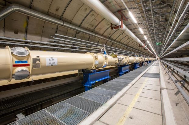 Sogenannte Axionen sind die vielversprechendsten Kandidaten für die Teilchen der dunklen Materie. Es handelt sich dabei um Teilchen mit geringer Masse, geringer Wechselwirkung mit anderen Teilchen und keinem Spin. Mittels eines neuartigen „Licht-durch-Wand“-Experiments am Deutschen Elektronenynchrotron (DESY) in Hamburg sollen diese Teilchen nun nachgewiesen werden. Dafür werden Axionen mittels starker Magnetfelder dazu animiert, sich in Photonen und wieder zurück zu verwandeln. Einige dieser Photonen müssten dabei jenseits einer lichtundurchlässigen Wand auftauchen. Der dabei verwendete ALPS-Detektor ist das weltweit empfindlichste derartige Instrument. Bild: Desy Auf der Jagd nach Axionen Axionen gehören wie auch das Higgs-Boson oder Photonen zu den Bosonen – also den Trägerteilchen der Grundkräfte. Es gab bereits erste Indizien für die Existenz solcher Dunklen Bosonen, aber der Nachweis steht bisher noch aus. Ein neuartiger Detektor soll dies ändernd. Das Experiment ALPS II (Any Light Particle Search) ist etwa 250 Meter lang und wurde von einer internationalen Forschungskollaboration am DESY in Hamburg aufgebaut. ALPS II verwendet ein ähnliches Messprinzip wie die Haloskope. Dabei handelt es sich um Detektoren, die dazu bestimmt sind, Axionen auf Basis ihrer Wechselwirkung mit elektromagnetischen Feldern aufzuspüren. Diese Art des Nachweises basiert auf der theoretischen Fähigkeit der Axionen, unter Einfluss starker Magnetfelder ein Umwandlung zu Photonen zu durchlaufen. Diese Umwandlung läuft auch anders herum, also von Photonen zu Axionen. In der Theorie bedeutet das, dass Photonen über die Umwandlung in Axionen auch lichtundurchlässige Wände durchqueren müssten. Dies soll durch das Experiment ALPS II nachgewiesen werden. Lichtdurchlässige Wand als Nachweishilfe ALPS II besteht aus zwei 120 Meter langen Vakuumrohren, die von je zwölf hintereinander liegenden Supraleiter-Magneten umschlossen werden, die jeweils neun Meter lang sind und ein Magnetfeld von 5,3 Tesla erzeugen, was mehr als 1000.000-Fache des Magnetfelds der Erde entspricht. Die dazu benötigten Bauteile kommen aus dem Protonenring des HERA-Beschleunigers und wurden für das ALPS-Projekt geradegebogen und wiederverwertet. In dem ersten dieser Vakuumrohre wird durch Laser ein intensives Licht erzeugt, dessen Photonen durch spezielle Spiegel reflektiert werden. Wenn ich in der ersten Röhre ein Photon in ein Axion verwandelt, kann es die Barriere am Ende des Rohrs passieren und taucht dann in der zweiten Röhre auf, die ebenfalls solch ein optischer Resonator ist. Verwandelt sich das Axion dort unter dem Einfluss des Magnetfelds zurück in ein Lichtteilchen, dann sollte dies durch einen Photodetektor nachgewiesen werden können. Wahrscheinlichkeit dennoch gering Durch die Kombination eines Magnetfelds mit einem Resonator wird die Wahrscheinlichkeit für die Rückumwandlung des Axion in ein Photon etwa um den Faktor Zehntausend erhöht. Zudem ist der Lichtdetektor so empfindlich, dass er auch ein einzelnes Lichtteilchen nachweisen kann. Hinzu kommt eine erstaunliche Präsentation des Spiegelsystems ist rekordverdächtig. Das ALPS-II-Experiment ist damit der bisher sensibelste Axionen-Detektor solch einer Bauart. „Das Ergebnis ist ein Experiment mit einem einzigartigen Entdeckungspotenzial für Axionen„, so Andreas Ringwald vom DESY. Besonders erfogsversprechend sei das Experiment dennoch nicht: „Die Wahrscheinlichkeit, dass sich ein Photon in ein Axion und wieder zurückverwandelt, ist trotz all unserer Techniktricks sehr klein – vergleichbar damit, dass man gleichzeitig mit 33 Würfel einen Pasch wirft„, erklärt Projektleiter Axel Lindner. Mit dem Laden des Videos akzeptieren Sie die Datenschutzerklärung von YouTube.Mehr erfahren Video laden YouTube immer entsperren Weitere Verbesserungen geplant Für den Anfang läuft die Suche nach Axionen mit ALPS II in einem reduzierten Betriebsmodus. In diesem wird die Suche nach Störlicht vereinfacht. Die volle Sensitivität soll das Experiment dann in der zweiten Jahreshälfte erreichen. 2024 wird dann das Spiegelsystems verbessert. Später soll dann ein alternatives Lichtdetektorsystem installiert werden. Erste Ergebnisse werden im Verlauf des Jahres 2024 erwartet. „Selbst wenn wir mit ALPS keine leichten Teilchen finden sollten, werden wir mit dem Experiment die Ausschlussgrenzen für superleichte Teilchen um den Faktor 1.000 verschieben„, so Lindner weiter. via DESY Teile den Artikel oder unterstütze uns mit einer Spende. Facebook Facebook Twitter Twitter WhatsApp WhatsApp Email E-Mail Newsletter