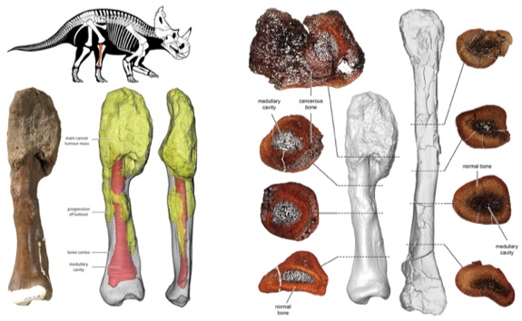Für viele gilt Krebs als eine Erkrankung der Neuzeit. Und auch wenn es heute deutlich mehr Umwelteinflüsse gibt, die die bösartigen Tumore verursachen: So ganz stimmt das nicht. Knochenfunde bei Vormenschen und Neandertalern belegen, dass auch unsere Vorfahren schon mit Krebserkrankungen zu kämpfen hatten. Ein Fossilfund aus Kanada belegt nun, dass die Geschichte von Krebs noch viel weiter zurück reicht: Auch die Dinosaurier litten schon an bösartigen Tumoren. Bild: ROM Knochenkrebs bei einem Dinosaurier Bereits 1989 entdeckten Paläontologen in Kanada ein ganzes Lager von Knochen der Dinosaurierart Centrosaurus apertus. Die Fossilen des Verwandten des Triceratops sind 76 bis 77 Millionen Jahre alt und ein Hinweis darauf, dass eine ganze Herde dieser Tiere damals bei einer Sturzflut umkam. An einem dieser Dinosaurier fanden Forscher rund um Mark Crowther von der McMaster University nun eine Besonderheit. Bei einer genaueren Untersuchung des Wadenbeines des Tieres fanden die Forscher eine Wucherung, die zuerst als eine verheilte Verletzung eingestuft wurde. Neue Analysen der Knochenstruktur mittels Dünnschnitten und eine Mikro-Computertomografie ergaben, dass der Centrosaurus unter einem Osteosarkom litt, also einem bösartigen Knochenkrebs. „ Wir haben hier die unzweifelhafte Signatur eines fortgeschrittenen Knochenkrebses bei einem 76 Millionen Jahre alten Dinosaurier. Das ist der erste Nachweis eines bösartigen Krebses bei einem Dinosaurier„, so Crowther. Das Tier hatte beträchtliche Schmerzen Osteosarkome breiten sich bei Menschen schnell im Knochen aus, von wo sie dann häufig in die Lunge und andere Organe metastasieren. Der Centrosaurus litt ebenfalls unter weit fortgeschrittenem Knochenkrebs. Das Wadenbein des Tieres war von dem Tumor so angegriffen, dass es bereits stark zerfressen war. Der Dinosaurier muss daher unter beträchtlichen Schmerzen gelitten haben. Die Forscher vermuten, dass der Krebs auch schon Metastasen gebildet hatte. „ Dieser Knochenkrebs muss verheerende Auswirkungen auf das Tier gehabt haben„, so Koautor David Evans vom Royal Ontario Museum. Das Laufen müsse für den Cetrosaurus eine Qual gewesen sein. Die Forscher vermuten, dass nur der Schutz der Herde ihn davor bewahrte, Opfer eines Jägers wie des Tyrannosaurus geworden zu sein. Letztlich starb das Tier aber nicht an dem Krebs, sondern ging wahrscheinlich mitsamt seiner Herde bei einer Sturzflut zugrunde. Diese weltweit erste Diagnose eines bösartigen Tumors bei einem Dinosaurier gibt den Forschern die Möglichkeit, genauere Erkenntnisse über die Evolution von Tumorerkrankungen zu gewinnen. Es handelt sich um einen Beweis, dass die Entwicklung von Krebs weit zurück reicht. via Royal Ontario Museum Teile den Artikel oder unterstütze uns mit einer Spende. Facebook Facebook Twitter Twitter WhatsApp WhatsApp Email E-Mail Newsletter