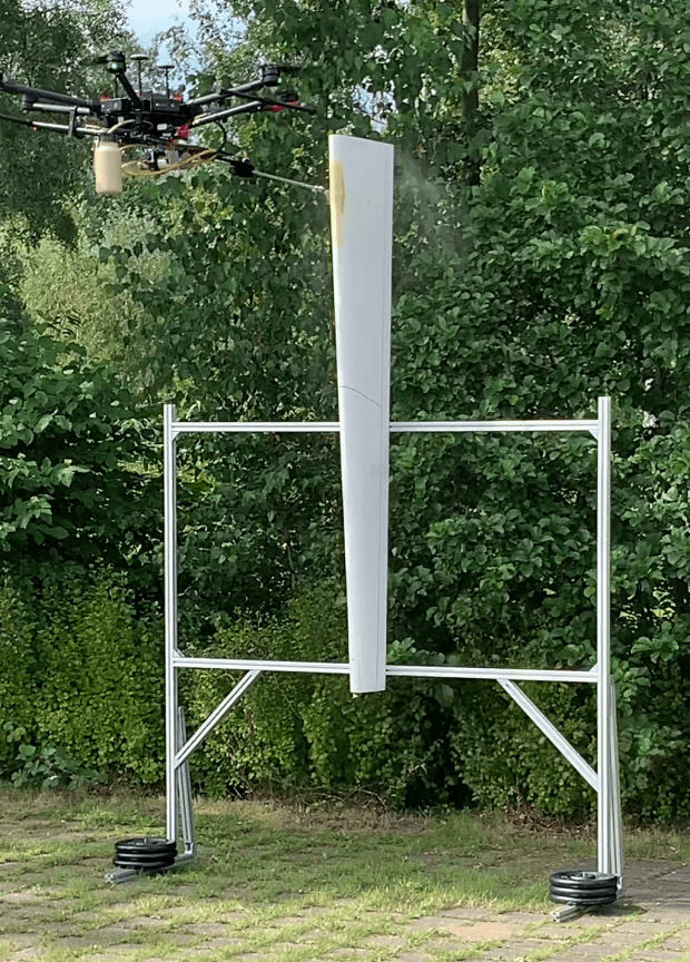 Eis, das sich bei feuchter Luft und Temperaturen von weniger als Null Grad Celsius an den Rotorblättern von Windenergieanlagen bildet, sorgt für eine Unwucht, die zum Verschleiß von Anlagenteilen und im Extremfall zum Abschalten führt. Beides kostet den Betreiber Geld, oft sogar viel Geld. Sie können sich mit beheizten Flügeln wehren, doch die sind viel teurer als unbeheizte. Sie können vorsorglich die gefährdeten Generatoren abschalten oder Hubschrauber losschicken, die die Rotorblätter enteist. Beides geht wieder massiv ins Geld. Bild: Fraunhofer IFAM „TURBO“-Schutz für mehrere Wochen Forscher an den Fraunhofer-Instituten für Produktionstechnik und Automatisierung (IPA) in Stuttgart und für Fertigungstechnik und Angewandte Materialforschung (IFAM) in Bremen haben jetzt eine preiswerte Lösung gefunden. Sie lassen die Flügel von Drohnen vor dem Vereisen schützen. „TURBO – Temporäre Beschichtung mittels Drohnen“ nennen sie das Verfahren. Die Basisarbeit leisteten IFAM-Forscher. Sie entwickelten ein Beschichtungsmaterial aus Harnstoff und Wachs, das umweltverträglich ist und gut haftet. Es lässt sich wie das Spray, mit dem Graffiti auf unschuldige Wände appliziert werden, auf die Flügel sprühen. Dort bindet es schnell ab und schützt mehrere Wochen lang vor Eisbildung. Die Schicht ist hauchdünn, sodass praktisch kein zusätzliches Gewicht bewegt werden muss. Das zeigten die Forscher in Bremen bei Tests in ihrer Eiskammer. Winzige Tröpfchen schießen aus der Lanzenspitze Die IPA-Kollegen rüsteten eine Drohne für die ungewöhnliche Arbeit um. Der Applikator besteht aus einer kleinen Pumpe, die das flüssige Harnstoff-Wachs-Gemisch mit hohem Druck in eine lange, dünne Lanze presst. An deren Spitze befindet sich eine Düse mit einem Durchmesser von nur 0,3 Millimetern. Daraus schießen Tröpfchen mit 100 Mikrometern Durchmesser heraus, die sogar bei Wind von 35 Stundenkilometern punktgenau auf die Kanten der Rotorblätter gespritzt werden, wo sie erstarren. Die Kanten sind besonders wichtig, denn hier beginnt der Vereisungsprozess, wenn nasse kalte Luft auf die Anlage trifft. Die Drohne wird so gesteuert, dass sie die Flügelkante aus kurzem Abstand besprüht, sodass nur wenig Vereisungsschutz verlorengeht. Auch die Bahn könnte die Drohne nutzen Im nächsten Schritt wollen die Forscher gemeinsam mit der Industrie das Gerät zur Serienreife bringen. Es kann für eine Vielzahl von Anwendungen eingesetzt werden. Das Spektrum reicht vom Vereisungsschutz für Windkraftanlagen und Oberleitungen im Bahnverkehr bis zur Sanierung von Gebäuden, beispielsweise für das Ausbessern von Defekten im Verputz an schwer zugänglichen Stellen. via Fraunhofer Teile den Artikel oder unterstütze uns mit einer Spende. Facebook Facebook Twitter Twitter WhatsApp WhatsApp Email E-Mail Newsletter