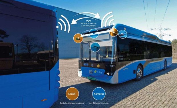 In München fahren Elektrobusse des niederländischen Hersteller Ebusco künftig in Kolonnen. Das erste Fahrzeug ist ganz konventionell mit einem Fahrer besetzt. Dahinter rollen die übrigen Busse in geringem Abstand. Sie machen haargenau das, was der Vordermann vorgibt. Platooning nennt sich das Konzept, das das Karlsruher Institut für Technologie (MIT) gemeinsam mit Ebusco und den Stadtwerken München entwickelt hat. Bild: KIT Testfeld im Norden von München Das Ziel des Projekts TEMPUS (Testfeld München – Pilotversuch Urbaner automatisierter Straßenverkehr) ist klar definiert. Der Einsatz von Platooning mit elektrischen Stadtbussen soll in der bayerischen Landeshauptstadt realitätsnah erprobt werden. Dafür haben München und der Freistaat Bayern ein urbanes Testfeld für automatisierte und vernetzte Fahrzeuge im Norden der Isar-Metropole ausgewiesen. Gefördert wird TEMPUS vom Bundesministerium für Verkehr und digitale Infrastruktur (BMDV) mit rund zwölf Millionen Euro. Optimale Anpassung an den Bedarf „Durch Platooning kann man den Busbetrieb optimal an den Bedarf je nach Tageszeit anpassen“, sagt Nicole Kechler vom Institut für Technik der Informationsverarbeitung (ITIV) am KIT. Werden viele Fahrgäste erwartet hängt man an den Führungsbus einen oder zwei weitere an, was im Normalfall mangels Fahrern nicht machbar ist. Die Busse korrespondieren miteinander. Lässt die Nachfrage nach kann die „elektronische Deichsel“ leicht gekappt werden – die hinteren Fahrzeuge bleiben dann einfach stehen, im Normalfall im Bus-Depot. Im Windschatten sinkt der Stromverbrauch Herkömmliche Busse benötigten weit mehr Energie und seien nicht flexibel einsetzbar, wenn es darum gehe, auf stark schwankende Fahrgastzahlen zu reagieren, so Professor Eric Sax, Leiter des ITIV. Da die hinteren Busse im Windschatten fahren verbrauchen sie deutlich weniger Strom als wenn sie allein unterwegs sind. Mit dem Laden des Videos akzeptieren Sie die Datenschutzerklärung von YouTube.Mehr erfahren Video laden YouTube immer entsperren Redundanz für mehr Sicherheit Für die Sicherheit sorgen jede Menge Sensoren an Bord – Lidar-, Radar- und Kamerasysteme überwachen Abstand und Zwischenraum. Fahrzeugdaten wie Position, Lenkwinkel und Geschwindigkeit werden per Funk an den folgenden Bus übertragen. Die Systeme sind zudem redundant ausgelegt. „Ein Bremsmanöver des vorderen Busses erfährt das Folgefahrzeug einmal durch ein durch die Luft übertragenes Signal und zusätzlich durch das Aufleuchten des Bremslichtes“, so Sax. via Teile den Artikel oder unterstütze uns mit einer Spende. Facebook Facebook Twitter Twitter WhatsApp WhatsApp Email E-Mail Newsletter