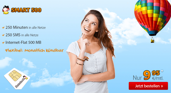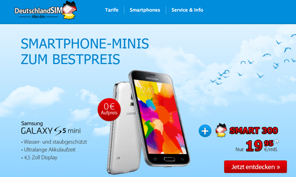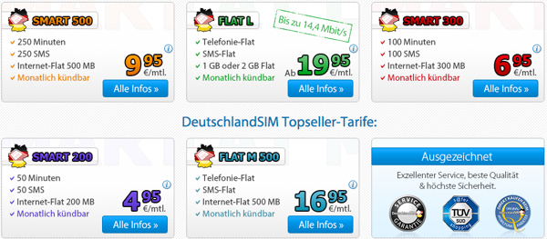 DeutschlandSIM Gutschein DeutschlandSIM ist ein Online Shop für Handytarife und Smartphones, bei dem Ihr die besten Angebote finden könnt für euer Handy. Freut Euch auf ein umfangreiches Sortiment an aktuellen Smartphones und bucht direkt den passenden Handytarif dazu. Und mit dieser Gutschein-Aktion erhaltet Ihr die Produkte von DeutschlandSIM zum exklusiven Tiefpreis. Löst euren DeutschlandSIM Gutschein noch heute ein und spart direkt am Bestellwert eures Einkaufes. DeutschlandSIM Gutscheine im Dezember 2025 DeutschlandSIM – Der günstige Anbieter für Handytarife und mehr Bei DeutschlandSIM findet Ihr garantiert den passenden Tarif für eure Handynutzung. Denn hier könnt Ihr zwischen diversen Allnet-Flatrates und speziellen Smartphone-Tarifen wählen. Stöbert einfach online in dem Angebot von DeutschlandSIM und sichert Euch einen exklusiven Rabatt auf euren Warenwert mit den DeutschlandSIM Gutscheinen. Smartphones bei DeutschlandSIM HTC One M8 Silver Sony Xperia Z2 Black Apple iPhone 6 iPhone 6 Plus LG G3 Günstige Tarife bei DeutschlandSIM Bei DeutschlandSIM findet Ihr Top-Handytarife, die Ihr bereits ab nur 4,95 Euro buchen könnt. Zudem könnt Ihr zu jedem Tarif bei Bedarf tolle Zusatzoptionen für einen kleinen Aufpreis dazu buchen. Somit findet jeder Kunde den passenden, individuellen Tarif für sein Nutzungsverhalten, ob Vieltelefonieren oder Dauer-Internetsurfer. Vergleicht hier einfach die übersichtlich dargestellten Tarife bei DeutschlandSIM und findet einen preiswerten Traumtarif online. Nutzt bei eurer Bestellung unbedingt den DeutschlandSIM Gutscheincode, um satte Prozente Rabatt auf den Wert Ihres Einkaufes zu sichern. Super Smartphones online bestellen Neben den Top-Tarifen findet Ihr im Angebot von DeutschlandSIM selbstverständlich auch eine große Auswahl an aktuellen Smartphones von Herstellern wie LG, Sony oder Apple. Freut Euch mit den Smartphones von DeutschlandSIM auf hochwertige Produkte mit den neusten Technologien und bucht direkt zu Eurem neuen Handy den passenden Tarif. Dabei habt Ihr zudem die Möglichkeit eure alte Nummer zu behalten oder eine Wunschnummer auszuwählen, was ebenso bei Congstar möglich ist. So ein Service wird nicht überall geboten und Bestandskunden sind daher begeistert von DeutschlandSIM. Sichert euch einfach neues Smartphone nun zum Schnäppchen-Preis mit einem der DeutschlandSIM Gutscheine. Tarife bei DeutschlandSIM FLAT M 500 SMART 200 SMART 1000 FLAT 1000 Ausgezeichneter Online Shop Der Online Shop von DeutschlandSIM wurde bereits mehrfach ausgezeichnet. Dabei hat er unter anderen eine TÜV-Plakette für das sichere Einkaufen bei DeutschlandSIM im Internet erhalten. Somit könnt Ihr sorglos online bei DeutschlandSim shoppen und bezahlen. Genießt das Shoppingvergnügen von zu Hause aus und sichert Euch weitere Vorteile durch den Newsletter von DeutschlandSIM. Zudem könnt Ihr noch heute bare Euro am Warenwert eurer Bestellung sparen, indem Ihr bei der Bestellung einfach eure DeutschlandSIM Gutscheine einlöst. Ein unfassbares Schnäppchen, das exklusiv für euch gilt! Wollt ihr alternativ zu den Mobilfunkangeboten auch einen neuen Festnetztarif oder auch stationäres Internet, so schaut einmal bei der Telekom oder bei Vodafone vorbei. Profitiert nun vom gratis DeutschlandSIM Gutschein Zögert nicht in dem DeutschlandSIM Online Shop nach dem perfekten Tarifangebot für Euch zu stöbern und ein aktuelles Smartphone gleich dazu zu buchen. Denn bei DeutschlandSIM findet Ihr garantiert die besten und günstigsten Angebote für euer Handy und könnt dabei auf tolle Services bauen. Spart zusätzlich am Bestellwert eures Einkaufes bei DeutschlandSIM mit eurem DeutschlandSIM Gutschein. Gebt einfach euren DeutschlandSIM Gutscheincode bei der Bestellung im Online Shop ein und schon wird sich euer Warenwert um satte Prozente dezimieren. Eure Vorteile bei DeutschlandSIM Vom TÜV Süd zertifizierter Online Shop Nummer wünschen oder alte Nummer behalten Kein Mindestbestellwert Auch bei Facebook