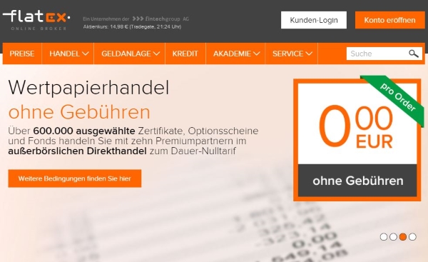 flatex Gutschein Nicht nur in Zeiten von Niedrigzinsen macht es Sinn, nach Möglichkeiten Ausschau zu halten, wie ihr mit eurem Geld so effizient wie möglich arbeiten könnt. Das ist dank der weltweiten Vernetzung aller Börsen und moderner Plattformen wie flatex auch ohne weiteres möglich. Darüber verschafft ihr euch kostengünstig Zugang zu den Handelsplätzen dieser Welt samt ihrer Möglichkeiten. Damit das Handeln kostengünstig und damit der erwirtschaftete Gewinn bei euch bleibt, stellen wir euch die flatex Gutscheine zur Verfügung. flatex Gutscheine im Dezember 2025 Das leistet flatex für euch ab Die Macher von flatex aus Kulmbach in Bayern machten sich schon früh einen Trend der Zukunft zu Nutze und gründeten im Jahre 2006 eine Handelsplattform für User, die ihr Geld an der Börse arbeiten lassen möchten. Dahinter steht die biw Bank für Investments und Wertpapiere AG, die für das nötige Know-how sorgt und in der Zwischenzeit Kundenvermögen von fast 4 Milliarden Euro verwaltet. Rund 140.000 Kunden handeln mit der ausgeklügelten Software des Anbieters und freuen sich, dass sie mithilfe der flatex Gutscheine diese Produkte preisgünstig nutzen können: FX-Handel CFD-Demokonto Außerbörslicher und börslicher Handel in den USA und Europa 0 Euro Handel Sparpläne und Geldanlagen Außerdem bietet flatex Börsenneulingen jede Menge Hilfestellungen in Form von gut verständlichen Trainingsvideos, Webinaren und Tipps von ausgesuchten Profis. Zudem könnt ihr flatex vor Ort treffen und dort eure Fragen zum Unternehmen und zum Handel mithilfe der Plattform loswerden. Sechs Argumente, die für flatex sprechen Bei flatex könnt ihr selbst festlegen, welches Risiko ihr eingehen möchtet. Wer mittel- und langfristig plant, hat beste Chancen, hohe Gewinne zu erzielen. Die Konditionen für die Inanspruchnahme der angebotenen Produkte sind äußerst kostengünstig und mit einem unserer flatex Gutscheine könnt ihr fast immer noch mehr sparen. Wir stellen euch nicht nur die Vorteilscoupons von flatex vor, sondern ihr erhaltet auch den passenden flatex Aktionscode kostenfrei ausgehändigt, mit dem ihr beispielsweise Freetrades geltend macht. Euren flatex Aktionscode könnt ihr mit wenigen Klicks während eurer Anmeldung am Anfang des Anmeldeformulars eintragen. Schließt ihr eure Registrierung ab, werden eure Vorteile berücksichtigt. Bei flatex genießt ihr feste Preise bei euren Handelsaktivitäten und ihr führt eure Depots und Konten kostenfrei. Außerdem kosten euch Realtimekurse und Teilausführungen keinen Cent. Orders und Transaktionen sind teilweise von den Gebühren befreit. Empfehlt ihr das Handelsportal weiter, könnt ihr euch über 10 Freetrades und Prämien bis zu 300 Euro freuen. Auch eure Empfehlungen erhalten Freetrades, sodass sie sofort mit dem Handeln beginnen können. Klickt einfach in eurem Verwaltungsbereich den Punkt Kundenwerbung an und folgt der dortigen Anleitung. Ein flatex Depot eröffnen – so einfach ist das Verschafft euch zunächst auf der Seite einen Überblick über die Konditionen von flatex und klickt anschließend auf „Konto eröffnen“. Damit könnt ihr eure Daten eingeben und anschließend das Formular ausdrucken, unterschreiben und bei der Deutschen Post zur Bestätigung eurer Identität vorlegen. Noch praktischer ist die Videolegitimation, für die ihr lediglich euren Personalausweis sowie eine Computer-Kamera benötigt. Hat alles seine Richtigkeit, erhaltet ihr alle erforderlichen Daten inklusive der iTAN-Card über die Deutsche Post. Damit steht euren ersten Schritten bei flatex nichts mehr im Wege. Der Kundenservice und Aktivitäten bei Social Media Benötigt ihr weitere Informationen und seid bei Twitter und Facebook unterwegs, könnt ihr dort zahlreiche Infos abrufen und mit dem Serviceteam Kontakt aufnehmen. Außerdem werdet ihr auf diesem Wege über Aktionsangebote informiert und auf flatex Gutscheine aufmerksam gemacht. Bei YouTube stehen euch jede Menge Videos über das Handling von flatex zur Auswahl. Gleichzeitig antwortet euch das Serviceteam telefonisch, wenn ihr von montags bis freitags zwischen 08:00 und 20:00 Uhr die Nummer +49 (0) 9221 70 35 897 wählt. Seid ihr bereits Kunde, könnt ihr euch sogar bis 22:00 Uhr an die Hotline +49 (0) 9221 35 898 wenden.