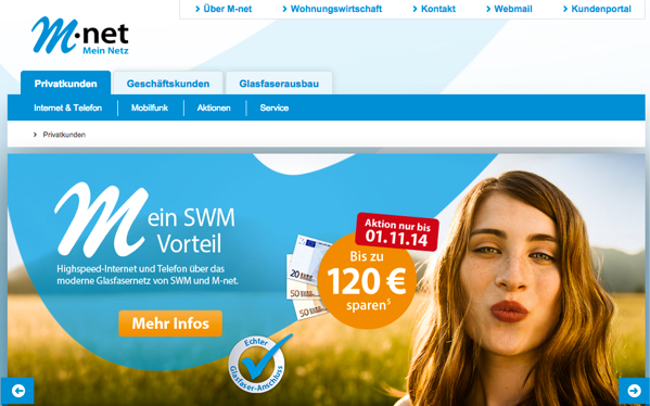 M-net Gutschein Seid Ihr auf der Suche nach einem günstigen Tarif für euer Handy? Oder sucht Ihr die perfekte Kombination aus Internet und Telefon? Dann seid Ihr bei M-net genau richtig. Denn hier gibt es all das und dazu noch ein echter Glasfaser-Anschluss. Ihr könnt euch diese Angebote nun zu einem reduzierten Preis sichern mit eurem M-net Gutschein. M-net Gutscheine im Dezember 2025 M-net – der Anbieter für Mobilfunk, Internet und Telefon Ihr könnt im Online Shop von M-net zwischen verschiedenen Tarifen, Flatrates und Kombi-Pakete für Mobilfunk, Internet und Telefon wählen. Dadurch habt Ihr die Möglichkeit das passende Angebot für Euren Bedarf an mobiler Kommunikation und Datenübertragung zu finden, und zwar einfach online von zu Hause aus. Sichert euch diese Angebote nun inklusive eines Rabatts auf Euren Bestellwert mit den M-net Aktionscodes. Tarife und Flats für Internet und Telefon bei M-net Surf & Fon-Flat 18 Surf & Fon Flat 50 Surf & Fon-Flat 100 Surf-Flat 18 Surf-Flat 50 Surf-Flat 100 Surfen mit M-net M-net bieten Ihnen das technologisch fortgeschrittene Glasfasernetz, welches Ihnen eine schnelle Datenübertragung ermöglicht. Damit gehört ewiges Warten und Puffern beim Surfen im Internet der Vergangenheit hat, denn es wird Zeit für ein Highspeed-Internet mit dem Anschluss von M-net. Dazu könnt Ihr ein Kombipaket inklusive Telefonanschluss wählen, wobei verschiedene Tarife zur Auswahl stehen. Dabei gibt es das richtige Angebot für Sparfüchse wie Einsteiger als auch Familien und Dauersurfern. Somit seid Ihr optimal versorgt und könnt sorglos telefonieren und surfen. Dieses Angebot könnt Ihr euch nun zum Top-Preis sichern mit Euren M-net Gutscheinen. M-net auch mobil der Hit Die Verfügbarkeit des M-net Mobilfunknetzes könnt Ihr einfach online überprüfen und dann garantiert ohne Störungen mobil Telefonieren, SMS versenden und Surfen. Die Tarife für Handys sind ebenso für unterschiedliche Nutzer geeignet, da Sie verschiedene Leistungen umfassen. Dabei habt Ihr die Möglichkeit zu den einzelnen Tarifen Zusatzoptionen zu buchen, wie ein SMS-Paket, eine Festnetz-Flat oder ein Surf-Upgrade. Bei M-net könnt Ihr euch Euren perfekten Tarif selbst zusammenstellen und somit nur das zahlen, was Ihr auch braucht. Freut euch auf die Leistungen von M-net, die schon zahlreiche Bestandskunden überzeugen. Zudem erhaltet Ihr auch als Neukunden mit dieser Aktion einen exklusiven Rabatt auf den Wert Eurer Bestellung bei M-net, einfach online mit einem der gratis M-net Gutscheine. Wollt ihr alternativ ein Angebot eines anderen Providers nutzen, so schaut am besten direkt bei Vodafone oder o2 vorbei. Handytarife bei M-net M-net Flat Surf & M-net-Flat Allnet-Flat Und viele Zusatzoptionen Der Service von M-net M-net legt einen großen Wert auf die Zufriedenheit seiner Kunden. Daher bietet euch dieser Online Shop ein umfassendes Serviceangebot, um euch die optimale Beratung bieten zu können. Dazu könnt Ihr euch direkt online mit den Antworten auf häufig gestellte Fragen vertraut machen oder auch per Telefon eine persönliche und kompetente Beratung erhalten von den Experten von M-net. Zudem könnt Ihr auf der Website von M-net wichtige Information auch einfach als PDF-Datei downloaden. euer Wechsel zu M-net verläuft dank des Services von M-net ohne einen Mehraufwand für euch. Freut euch auf diese Top-Betreuung und sichert euch mit Euren M-net Gutscheinen satte Prozente auf euren Warenwert. Schnäppchen mit einem M-net Gutschein Spart bare Euro am Wert Eurer Bestellung bei M-net, ganz einfach mit einem M-net Gutschein. Dazu gebt Ihr lediglich den M-net Gutscheincode ein und schon verringert sich euer Bestellwert bei M-net. Das Eingeben der kostenlosen Coupons ist zudem sehr einfach möglich und stellt überhaupt kein Problem dar. Schlagt also am besten sofort zu und sichert euch einen tollen Rabatt. Eure Vorteile bei M-net Kein Mindestbestellwert Glasfaser-Anschluss von M-net Durch Weiterempfehlung bis zu 70 Euro geschenkt Informativer Newsletter