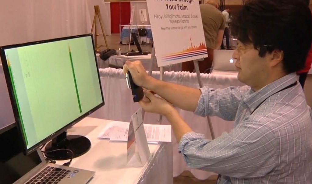 Braille-Schrift wird schon länger verwendet um Blinden „flachen“ Text haptisch zu übersetzen, so dass sie mit ihren Fingern lesen können. In einer Bild- und Video lastigen Online Welt gehen dabei jedoch viele Informationen verloren. Forscher der University of Electro-Communications in Japan haben mit dem „Hamsa Touch“ nun ein Gerät für Blinde entwickelt, das es ihnen ermöglicht zu fühlen, was auf einem Computer- oder Smartphone-Display zu sehen ist. Auch bewegte Bilder wie z.B. Videos können so dargestellt werden. Funktionsweise des Hamsa Touch Bilder werden in elektrische Impulse umgewandelt wie man über den Hamsa Touch auf seiner Handfläche fühlen kann. Der aktuelle Prototyp enthält 512 Foto-Sensoren die 512 Elektroden individuell ansteuern können. Bilder werden dabei quasi in Schwarz und Weiß umgewandelt und die Impulse dementsprechend auf den Hamsa Touch übertragen. Anstatt wie bei Brailleschrift üblich Erhebungen zu erzeugen wird hier ein leichter Elektro-Impus gesendet der eher wie ein leichtes Kitzeln auf der Haut ist. Diese Technologie würde sich auch mit anderen Entwicklungen wie der Tactus Folie oder dem Haptic Reader verknüpfen lassen, die visuelle Darstellungen in Erhebungen umwandelt oder mit dem Finger-Reader des MIT, der Text vorlesen kann. Video des Hamsa Touch Bild zu Braille Übersetzers Mit dem Laden des Videos akzeptieren Sie die Datenschutzerklärung von YouTube.Mehr erfahren Video laden YouTube immer entsperren Teile den Artikel oder unterstütze uns mit einer Spende. Facebook Facebook Twitter Twitter WhatsApp WhatsApp Email E-Mail Newsletter