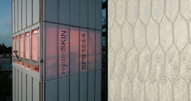 Im Rahmen des Klimawandels wird die Kühlung von Gebäuden immer bedeutsamer. Denn zum einen überhitzen Städte aufgrund ihrer versiegelten Bauweise besonders stark, zum anderen verursacht die dadurch notwendige Gebäudekühlung einen hohen Energieverbrauch. Forscher:innen haben eine Gebäudefassade entwickelt, die bei Regen das Regenwasser aufnimmt und dieses an heißen Tagen durch Verdunstungskühlung wieder abgibt. So können nicht nur Gebäude gekühlt werden, sondern quasi nebenbei auch die durch Hochwasser und Starkregen verursachten Schäden und die damit verbundenen Kosten verringert werden. Die Fassaden könnten gerade in dicht bebauten Stadtgebieten dem Stadtklima deutlich zugute kommen. Bild: Sven Cichowicz/ Universität Stuttgart Hochhäuser tragen zu aufgeheizten Städten bei Hochhäuser mit großen Glasfassaden sehen modern und gut aus. Aber sie nehmen an heißen Tagen auch enorme Mengen Energie auf und können dann unter den Strahlen der Sonne so heiß werden, dass darauf Spiegeleier gebraten werden können. Das Resultat: In dicht bebauten Stadtgebieten können die Temperaturen lokal um 10 Grad höher sein als in urbanen Parks. Asphalt, Glasfassaden, Beton und andere menschengemachte Oberfläche speichern die Wärme der Sonnenstrahlen und erwärmen sich entsprechend, während Grünflächen Wasser aufnehmen und bei dessen Verdunstung einen Kühleffekt erzeugen. Versiegelte Flächen führen außerdem dazu, dass Wasser immer schwieriger abfließen kann, sodass neben dem Hitze- auch das Hochwasserrisiko steigt. Eine mögliche Lösung wäre der Ausbau der Kanalisationssysteme. Dies würde aber nicht nur einen enormen baulichen Aufwand und entsprechende Kosten bedeuten, sondern ist auch in Zeiten immer knapper werdenden Ressourcen nicht unbedingt die beste Idee. Fassade kühlt Gebäude Ein Team rund um Werner Sobek von der Universität Stuttgart hat deshalb die erste hydroaktive Gebäudefassade als Alternative entwickelt. „Hydroaktive Elemente stellen bei minimalem Ressourceneinsatz eine effektive Fassadenlösung zur Neutralisierung des städtischen Hitze-Insel-Effektes dar„, so Sobek. Die sogenannten „HydroSKINs“ basieren auf der Idee, dass die Fassadenelemente Teile des Regenwassers aufnehmen und speichern. So kann das Wasser dann an heißen Tagen verdunsten und erzeugt einen Kühleffekt. Kernelement der neuartigen Fassade sind zwei Textillagen, die mit Hilfe von Fäden auf Abstand gehalten werden. So kann wird eine hohe Luftzirkulation gewährleistet, die die Verdunstung von Wasser fördert und den Kühleffekt der Fassade verstärkt. An der Außenseite befindet sich eine wasserdurchlässige Textilhülle, die nahezu allen Regentropfen das Eindringen ermöglicht und gleichzeitig als Schutz vor Verunreinigungen fungiert. Auf der Innenseite wiederum befindet sich eine Folie, die das Wasser in das untere Profilsystem ableitet, von wo aus es in einem Reservoir gespeichert oder direkt im Gebäude genutzt werden kann. An heißen Tagen wird das Wasser dann zurück in die Fassadenelemente geleitet, wo es verdunsten kann. Hydroaktive Fassaden besonders gut für Hochhäuser geeignet Derzeit werden erste Elemente der neuen Fassade am weltweit ersten adaptiven Hochhaus auf dem Campus der Universität Stuttgart getestet. „Die Ergebnisse sind vielversprechend. Bereits in Laboruntersuchungen konnten wir circa zehn Grad Temperaturreduktion durch den Effekt der Evaporation nachweisen. Die ersten Messungen am Hochhaus Anfang September weisen auf ein noch deutlich höheres Kühlpotenzial hin„, so Christina Eisenbarth, die Teil des Teams ist. Besonders Hochhäuser haben ein hohes Potential zur Anwendung der hydroaktiven Fassaden. Zum einen weisen sie eine große Fassadenfläche auf, zum anderen trifft Regen mit zunehmender Höhe als Schrägregen auf vertikale Oberflächen. Ab 30 Metern Gebäudehöhe kann so mehr Wasser über die Fassade aufgenommen werden. Außerdem verstärken die höheren Windgeschwindigkeiten in der Höhe die Verdunstungseffekte. Des Weiteren entsteht ein kühler Luftstrom, der die Umgebung kühlt. Die Fassadenelemente sind zudem sehr leicht und können so sowohl an Neubauten als auch nachträglich an bestehenden Gebäuden angebracht werden. „Dieses Fassadensystem stellt eine artifizielle Retentionsfläche zur Regenwasserrückhaltung und -verdunstung in der Gebäudefassade dar, die durch ihre optischen und haptischen Qualitäten nicht nur unglaublich schön ist, sondern zugleich einen Meilenstein für die Anpassung der gebauten Umwelt an die akuten Herausforderungen unserer Zeit darstellt„, so Eisenbarth. via Universität Stuttgart, Civil Engineering Design Teile den Artikel oder unterstütze uns mit einer Spende. Facebook Facebook Twitter Twitter WhatsApp WhatsApp Email E-Mail Newsletter