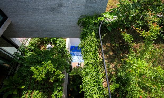 Die vietnamesischen Architekten von Vo Trong Nghia Architects standen vor der Aufgabe, ein städtisches Eigenheim zu errichten, das den Bewohnern üppige Natürlichkeit bietet. Mit dem Binh House konstruierten sie ein Gebäude mit genügend Raum für viele großwüchsige Pflanzen und sogar für Bäume. Draußen oder doch schon drinnen? / Foto: Vo Trong Nhia Architects Der pflanzliche Bewuchs bietet eine natürliche Klimatisierung Drei Generationen einer Familie sollen sich von den Früchten ernähren können, die in diesem Haus aus Naturstein, Holz und Beton wachsen. Auf wirklich jedem Stockwerk haben die Architekten jede Menge Pflanzen angesiedelt, vom Erdgeschoss bis zum Dach. Das herrliche Grün dient nicht nur der Ernährung, sondern auch der Beschattung, in den heißen Sommermonaten, darum benötigen die Bewohner nur eine sehr reduzierte künstliche Klimatisierung. Riesige Glasschiebetüren sorgen dafür, dass das Tageslicht bis in den hintersten Winkel dringt und sich die verschiedenen Räume trotzdem voneinander trennen lassen. Mit eingeplant sind natürliche größere Räume für familiäre Gemeinschaft ebenso wie private Rückzugsmöglichkeiten für jeden einzelnen Hausbewohner. Das Binh House im Querschnitt / Foto: Vo Trong Nhia Architects Zum Wohle der Menschen und für die Umwelt Das Gebäude wurde in einem dicht besiedelten Stadtteil von Ho Chi Minh City errichtet, also in einer Umgebung, wo sich die Natur inzwischen äußerst rar macht. Insgesamt herrscht in Vietnams urbanen Lebensräumen das Problem, dass der reichhaltige tropische Bewuchs immer mehr durch Häuser und Straßen verdrängt wird, eine Neuausrichtung ist also dringend geboten, zum Wohle der Menschen ebenso wie für die Umwelt. Von diesem Haus profitieren Mensch und Umwelt / Foto: Vo Trong Nhia Architects Das Binh House als Teil der Projektserie »House for Trees« Das Binh House ist Teil einer architektonischen Serie zum Thema »House for Trees«, diesmal ist ein regelrechter heimischer Dschungel entstanden. Um den Energieverbrauch noch weiter zu senken, sind sämtliche Nicht-Wohnräume wie Badezimmer, Küche und Treppe auf der Westseite angesiedelt, sodass die dahinter liegenden Wohnräume vor der direkten Sonneneinstrahlung geschützt werden. Ein Bauprojekt also, dass das heiße vietnamesische Klima voll und ganz berücksichtigt, inklusive mehrerer Terrassen, begehbarem Dachbereich sowie Whirlpool und Swimming-Pool an der frischen Luft. Quelle: inhabitat.com Teile den Artikel oder unterstütze uns mit einer Spende. Facebook Facebook Twitter Twitter WhatsApp WhatsApp Email E-Mail Newsletter