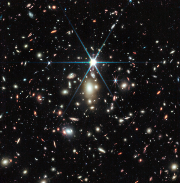 Bereits 2022 wurde ein Earendel getaufter Stern als der am weitesten von der Erde entfernte bekannte Stern identifiziert. Das James-Web-Weltraumteleskop der NASA liefert nun neue Erkenntnisse. Bild: NASA Neue Erkenntnisse Die hochauflösende Aufnahmetechnologie des James-Webb-Teleskops ermöglichte es, neue Informationen über den Stern herauszufinden, der der am weitesten entfernte bekannte Stern im kompletten Universum ist. Den neuen Erkenntnissen zufolge handelt es sich bei Earendel um einen besonders massereichen Stern des Typs B. Dieser befindet sich in einer Galaxie namens Sunrise Arc. Earendel ist ausgesprochen hell: Er leuchtet etwa eine Million Mal heller als die Sonne und ist doppelt so heiß. Sein Name entstammt dem Altenglischen und bedeutet so viel wie „Morgenstern“. Der Stern habt sein Licht bereits 900 Millionen Jahre nach dem Urknall ins All gesendet. Natürlicher Effekt vergrößert das Bild Sichtbar gemacht wurde Earendel nur durch die natürliche Vergrößerung durch einen Galaxiehaufen, der zwischen der Erde und Earendel liegt. Ohne dessen Effekt wäre der Stern für menschliche Augen unsichtbar geblieben. Denn die Masse des Galaxiehaufens führt zu einer Verformung des Raums, die wie ein natürliches Vergrößerungsglas wirkt. Dieser sogenannte Gravitationslinseneffekt vergrößerte das Bild auf das 4.000-fache. Dennoch war Earendel nur als einzelner Lichtpunkt auf den hochauflösenden Infrarotbildern sichtbar. Die NASA geht davon aus, dass Earendel einen rötlichen Begleitstern haben könnte, der kühler ist. Mittelfristig hoffen die Wissenschaftler:innen, einen Stern der allerersten Generation ausfindig machen zu können. Ein solcher Stern würde nur aus Wasserstoff und Helium bestehen – also den Grundbestandteilen des Universums nach dem Urknall. via NASA Teile den Artikel oder unterstütze uns mit einer Spende. Facebook Facebook Twitter Twitter WhatsApp WhatsApp Email E-Mail Newsletter