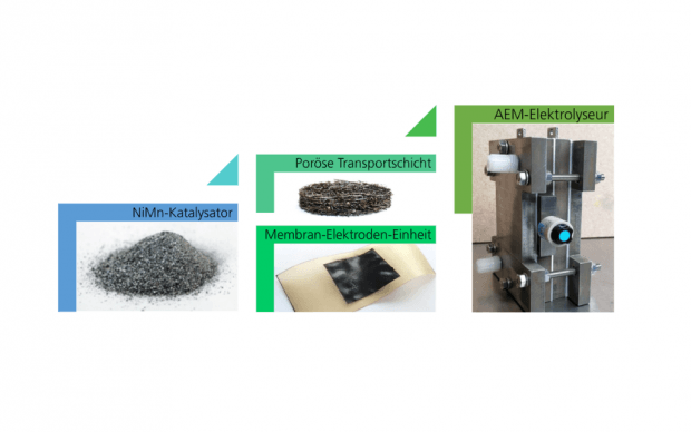 Das Fraunhofer-Institut für Fertigungstechnik und Angewandte Materialforschung IFAM in Dresden arbeitet im Rahmen des Projekts HighHy gemeinsam mit Forscher:innen aus Neuseeland daran, die aktuell noch recht junge Technologie der AEM-Elektrolyse effizienter zu machen, um so günstiger und ressourcenschonender grünen Wasserstoff herzustellen. Die Möglichkeit, Wasserstoff unter alleiniger Verwendung erneuerbarer Energien herzustellen, ist von entscheidender Bedeutung für die Energiewende. Wasserstoff spielt eine wichtige Rolle in der Energiewende Viele Herausforderungen, die mit der Energiewende einhergehen, könnten unter Einsatz von Wasserstoff bewältigt werden. Dieser ist sowohl im Straßenverkehr als auch in der Industrie- und Wärmeversorgung einsetzbar – und in Zukunft werden wir wahrscheinlich große Mengen davon benötigen. Die Gewinnung von Wasserstoff im größeren Stil stellt derzeit jedoch ebenfalls noch eine Herausforderung dar. Einige der Probleme, die mit der Massenproduktion von Wasserstoff einhergehen, möchte das Projektteam von HighHy lösen. Der Ansatz ist, Katalysatoren für eine hocheffiziente und kostengünstige Produktion von Wasserstoff zu gewinnen. Das Mittel der Wahl zur Herstellung von Wasserstoff im industriellen Maßstab ist die Elektrolyse. Dabei werden Wassermoleküle in einem mit Leitsalz versetzten Wasser unter Einsatz elektrischer Energie in Wasserstoff und Sauerstoff gespalten. Die chemischen Bindungen im Wasserstoff speichern dabei die eingesetzte Energie und macht aus dem Gas eine attraktive Möglichkeit zur Speicherung überflüssiger Energie aus Wind- und Solarkraft. Wenn Wasserstoff unter Einsatz erneuerbarer Energien gewonnen wird, wird er als „grün“ bezeichnet. HighHy sucht Katalysator für die AEM-Elektrolyse Aktuell werden drei verschiedene Elektrolyseverfahren verwendet. Die alkalische Elektrolyse (AEL), die am weitesten verbreitet ist, die Elektrolyse mit einem Protonenaustauschmembran-Elektrolyseur (PEM-EL) sowie die Elektrolyse mittels Anionenaustauschmembran (AEL). Letztere Technologie ist relativ neu und vereint die Vorteile der AEL-Elektrolyse (Langzeitstabilität und Einsatz gut verfügbarer, kostengünstiger Metalle) mit denen der PEM-Elektrolyse (höhere Leistung und bessere Reinheit des Gases). Allerdings konnte sich das Verfahren bisher in der Industrie noch nicht durchsetzen, da die ihr Zugrunde liegende Sauerstoff-Entwicklungs-Reaktion (OER) nur relativ langsam abläuft, was zu einem vergleichsweise hohen Energiebedarf führt. Hier setzt das Projekt HighHy an. Im Rahmen des deutsch-neuseeländischen Projekts sollen OER-Katalysatoren und somit hocheffiziente AEM-Elektrolyseure entwickelt werden. Die Forscher:innen von HighHy wollen eine innovative Nickel-Mangan-Verbindung als OER-Katalysator einsetzen. Diese basiert auf gut verfügbare, günstige Metalle und weist eine vielversprechende chemische Aktivität auf. Die an dem Projekt beteiligten Institutionen arbeiten parallel an verschiedenen Ansätzen. „Der komplementäre Ansatz ist etwas Besonderes: Die Projektpartner erproben viele unterschiedliche Synthesemethoden, Zusammensetzungen, Oberflächenstrukturen und Materialgrößen für die Beschichtung der Katalysatoren. Am Ende soll aber nur eine – die beste – Lösung ausgewählt und anhand eines Demonstrators, der in Neuseeland entsteht, umfassend getestet werden„, erklärt Dr. Clemens Kubeil von der Abteilung Wasserstofftechnologie am Fraunhofer IFAM in Dresden die Vorgehensweise. Bild: Fraunhofer IFAM AEM-Elektrolyse als kostengünstige Alternative Am Fraunhofer IFAM soll sowohl die elektrochemische Aktivität des Katalysators als auch die elektrische Kontaktierung der Elektroden und der Elektrolytfluss optimiert werden. Die Forscher:innen hoffen, unter Einsatz des Katalysators die für die Sauerstoffentstehung benötigte elektrische Energie verringern zu können. Das Resultat wären effizientere AEM-Elektrolyseure. Die AEM-Elektrolyse könnten dann die bisher verbreiteteren Verfahren AEL und PEM-EL ergänzen und teilweise auch ersetzen. Vor allem preislich wäre die AEM-Elektrolyse dann die beste Alternative, da die benötigten Rohstoffe kostengünstig verfügbar sind. „Ein weiterer Vorteil liegt darin, dass dank der gasdichten Membran sowie des geringer konzentrierten Elektrolyts und asymmetrischen Elektrolytflusses unter großen Drücken produziert werden kann. Dadurch lässt sich sehr reiner und gleichzeitig komprimierter Wasserstoff herstellen, der leichter eingespeist werden kann. Dies wiederum ermöglicht das schnellere Hoch- und Herunterfahren und den Teillastbetrieb von Systemen – all das ist sehr interessant, wenn man eine Anwendung in den fluktuierenden Markt einbringen will„, erklärt Kubeil. via Fraunhofer-Gesellschaft Teile den Artikel oder unterstütze uns mit einer Spende. Facebook Facebook Twitter Twitter WhatsApp WhatsApp Email E-Mail Newsletter