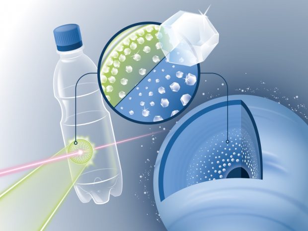 Die Theorie gibt es schon seit einigen Jahren: Auf den Planeten Neptun und Uranus sollen winzige Diamanten in Richtung Planetenkern herabsinken. Oder etwas bildlicher gesprochen: Es regnet dort Diamanten. Selbst gesehen hat dieses Phänomen aber natürlich noch niemand. Denn zum einen sind die Planeten dafür viel zu weit von der Erde entfernt. Zum anderen sind die Bedingungen vor Ort zu extrem. So herrschen Temperaturen von mehreren tausend Grad Celsius und der Atmosphärendruck ist millionenfach größer als auf unserer Erde. Genau diese Bedingungen dürften aber auch für die Entstehung der Diamanten sorgen. Ein internationales Forschungsteam unter der Führung des Helmholtz-Zentrums Dresden-Rossendorf hat sich nun allerdings gedacht: Wenn wir selber nicht auf Neptun oder Uranus forschen können, dann simulieren wir die dort herrschenden Bedingungen einfach auf der Erde. Tatsächlich erwies sich dieser Ansatz als sehr erfolgreich und brachte große Erkenntnisgewinne mit sich. Bild: Blaurock / HZDR PET bietet die beste Mischung aus Kohlenstoff, Wasserstoff und Sauerstoff Schon vor einiger Zeit nutzten sie daher extrem starke Laserblitze, um damit Kohlenwasserstofffolien zu beschießen. Diese erhitzten sich dadurch kurzzeitig auf bis zu 6.000 Grad Celsius. Mithilfe einer künstlich erzeugten Schockwelle wurde zudem der extreme Druck auf den Planeten simuliert. Tatsächlich entstanden so winzig kleine Diamanten. Diese Versuchsanordnung war aber noch nicht ganz optimal. Denn es fehlte der auf den Planeten ebenfalls existierende Sauerstoff. Bei ihrer Suche nach einem besseren Ausgangsmaterial stießen die Forscher schließlich auf PET – den Basisstoff für die meisten Plastikflaschen auf der Erde. Hier fanden sie das richtige Verhältnis aus Kohlenstoff, Wasserstoff und Sauerstoff. Also wiederholten sie den oben beschriebenen Versuch noch einmal mit PET statt reinen Kohlenwasserstofffolien. Das Ergebnis: Durch den Sauerstoff wurde die Reaktion extrem beschleunigt. Die Forscher sehen sich daher in ihrer Theorie des Diamantenregens auf Neptun und Uranus bestätigt. Nanodiamanten könnten so gezielt produziert werden Interessanterweise bringt das Experiment aber auch Anwendungsmöglichkeiten auf der Erde mit sich. Denn sogenannte Nanodiamanten sind auf der Erde nicht nur in der Schmuckherstellung beliebt. Vielmehr kommen sie auch in Schleifmitteln zum Einsatz. Außerdem könnten sie zukünftig als Quantensensoren, als medizinisches Kontrastmittel oder als Reaktionsbeschleuniger Verwendung finden. Bisher werden die Nanodiamanten ausschließlich durch Sprengstoff-Detonationen gewonnen. Dies ist aber kein besonders genaues Verfahren. Mithilfe der gezielten Laserimpulse ließen sich hingegen kleine Diamanten mit exakt der gewünschten Größe und in genau der benötigten Anzahl herstellen. Bei der Verwendung in Industrie und Forschung spielt es dann auch keine Rolle, ob es sich um natürliche oder künstliche Diamanten handelt. Eine Hoffnung muss man der Menschheit allerdings nehmen: Unser Plastikmüllproblem lässt sich so nicht sinnvoll lösen. Denn dazu ist schlicht der Energieverbrauch zu groß. Via: New Atlas Teile den Artikel oder unterstütze uns mit einer Spende. Facebook Facebook Twitter Twitter WhatsApp WhatsApp Email E-Mail Newsletter