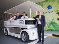 Der Fachbereich Energy Research an der Nanyang Technological Universität in Singapur hat sich mit dem Hersteller innovativer Tranportmittel namens „Induct“ zusammengeschlossen um das erste selbstständig-fahrende Transportmittel der Stadt, den sogenannte „Navia“ zu bauen. Mit 20 km/h können sich nun Einwohner und Touristen durch bestimmte Teile der Stadt fahren lassen und das 100% elektrisch und über GPS gesteuert. „Singapur Electric“ Stadtauto Das selbstständig-fahrende Auto ähnelt ein wenig einem Shuttle am Flughafen. Ein wenig kleiner und nur für 8 Passagiere, doch fährt es völlig autonom und elektrisch angetrieben. Das Team schätzt, dass durch das Navia Vehikel bis zu 50% der Transportkosten der Stadt eingespart werden können. Der Fokus liegt dabei klar auf die Verwendung von erneuerbaren Energien und dem effizienten Transport von Einwohnern und Touristen in der Stadt. Mit dem Navia Singapur Electric setzt die Stadt ein gutes Zeichen in Richtung Umweltschutz. Nach nur zwei Jahren in denen die Navia`s getestet und das System weiterentwickelt wird, soll dann entschieden werden, ob ganze Flotten von umweltfreundlichen Fahrzeugen dieser Art in der Stadt eingesetzt werden. Navia: Stadt-Transportmittel für 8 Personen Nach unserem Geschmack sind die selbstständig-fahrenden Vehikel Singapur´s noch ein wenig langsam. Zwar ist man schneller als zu Fuß, doch die Geschwindigkeit könnte ein wenig erhöht werden. Ansonsten ist die technische Entwicklung von selbst-fahrenden Vehikeln für 8 Personen in einer stark Luft-verschmutzten Stadt wie Singapur ein sehr guter Schritt in die richtige Richtung. Singapur – Erstes selbständig-fahrendes Transportmittel der Stadt Singapur – Erstes selbständig-fahrendes Transportmittel der Stadt (3) Top 3 Trends zum Thema: Autonomes Fahren Automatisches Fahren: BMW & Continental entwickeln “elektronischen Co-Pilot” Google Roboterauto während der TED Konferenz demonstriert Plugness Power – Wireless Ladestation für Elektroautos Handy-Video zum Navia Electric in Singapur Mit dem Laden des Videos akzeptieren Sie die Datenschutzerklärung von YouTube.Mehr erfahren Video laden YouTube immer entsperren Quelle Teile den Artikel oder unterstütze uns mit einer Spende. Facebook Facebook Twitter Twitter WhatsApp WhatsApp Email E-Mail Newsletter
