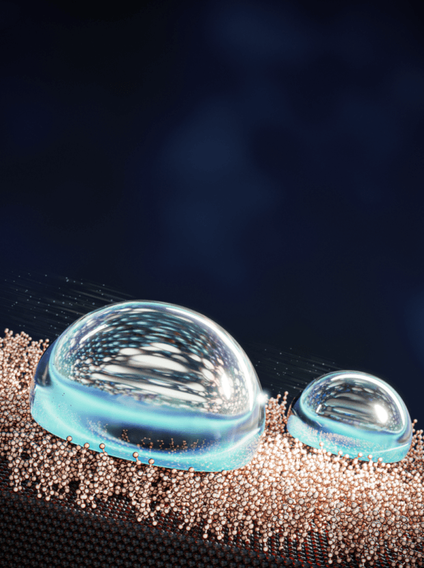 Chemiker:innen gelang es, eine spezielle Beschichtung zu entwickeln, mit der man Oberflächen extrem wasserabweisend machen kann. Bereits bei einer Neigung von nur 0,01 Grad gleiten Wassertropfen von einer entsprechend beschichteten Oberfläche ab. Es handelt sich um eine Entdeckung, die durchaus Einiges an Alltagsrelevanz aufweist. Bild: Ekaterina Osmekhina Moleküle weisen auf Nanoebene Wasser ab Wasserabweisende Antihaftbeschichtungen haben einen festen Platz in unserem Alltag, etwa beim Kochen oder als Beschichtung von Fensterscheiben. Dabei kommen in der Regel entweder Beschichtungen mit wasserabweisenden Chemikalien oder eine nanostrukturierte Oberfläche zum Einsatz. Beide Methoden sollen die Reibung zwischen Oberfläche und Wassertropfen so herabsetzen, dass der Tropfen sich nicht anlagert, sondern direkt abperlt. Chemiker:innen rund um Sakari Lepikko von der Aalto-Universität in Finnland haben nun eine Alternative zur nanostrukturierten Oberflächen mit Lotus-Effekt entwickelt. „Es ist das erste Mal, jemand direkt auf die Nanometer-Ebene gegangen ist, um direkt dort molekular heterogenen Oberflächen zu erzeugen„, erklärt Lepikko das Prinzip. Dabei kommen spezielle Moleküle zum Einsatz, die der Oberfläche eine wasserabweisende Schicht verleihen. Die Beschichtung besteht dabei aus organischen Molekülen mit einem hydrophilen Kopf aus Siliziumatomen und einem wasserabwesenden „Schwanz“, der aus einer Kohlenwasserstoffkette besteht. Das Besondere dabei ist, dass die Moleküle selbstorganisierend und hochgradig mobil sind. Sie sind zwar über kovalente Bindungen an die Oberfläche gebunden, können aber flexibel ihre Positionen wechseln und verhalten sich mehr wie eine flüssige Schmierschicht als eine fixe Beschichtung. Dahinter steckt ein neuer Mechanismus In Praxistests stellten die Forscher:innen fest, dass die Beschichtung entgegen ihren Erwartungen bei mittlerer Moleküldichte eher enttäuschte, aber dafür bei sehr hoher oder geringer Dichte extrem wasserabweisend war. Konkret maß das Team eine Reibung von 0,024 Mikronewton pro Millimeter. Ein 15 Mikroliter umfassender Wassertropfen würde so schon bei einer Neigung von nur 0,01 Grad abrutschen. „Unseres Wissens nach ist dies damit die rutschigste je dokumentierte Oberfläche„, so die Forscher:innen. Nähere Analysen durch das Team ergaben, dass hier zwei Varianten eines neuartigen Mechanismus wirken. Wenn die Dichte der Moleküle niedrig ist, können einzelne Wassermoleküle als eine Art dünner Film zwischen die Moleküle der Beschichtung gelangen, sodass eine flache, hochgradig bewegliche Schicht entsteht. Dieses interfaziale Wasser fungiert als Schmierschicht für den Tropfen und senkt die Reibung auf sehr niedrige Werte ab„, erklären die Forscher:innen. Bei hoher Moleküldichte kommt die zweite Variante zum Tragen: Bei ihr bleibt das Wasser oben auf der Beschichtung und perlt ebenso leicht ab. Dabei verringern die wasserabweisenden Enden der Moleküle die Kontaktfläche mit dem Tropfen und verhindern Anlagerungen von Wassermolekülen auf der Oberfläche. „Dieses interfaziale Wasser fungiert als Schmierschicht für den Tropfen und senkt die Reibung auf sehr niedrige Werte ab“ erklären die Forscher:innen. Neue Ansätze für Antihaftflächen Die Chemiker:innen gehen davon aus, mit ihrer Entdeckung neue Ansätze für wasserabweisende Schichten gefunden zu haben, die eine Vielzahl von Anwendungen hätten, etwa bei Leitungen, in der Optik oder in der Luftfahrt. „Auch Dinge wie der Wärmetransfer in Rohren, die Enteisung und das Verhindern von beschlagenen Scheiben sind potenzielle Anwendungen. Unser eigentlich den gängigen Regeln widersprechender Mechanismus ist ein neuer Weg, um Tropfenmobilität überall dort zu erhöhen, wo sie benötigt wird„, so Lepikko. Derzeit arbeitet das Team daran, die Antihaftschicht weiter zu optimieren. Noch ist sie nämlich nicht haltbar genug um praktisch einsetzbar zu sein. „Aber das Wissen um die grundlegende Wirkungsweise gibt uns die Chance, auf dieser Basis haltbarere Anwendungen zu entwickeln„, enden die Forscher:innen. via Aalto University Teile den Artikel oder unterstütze uns mit einer Spende. Facebook Facebook Twitter Twitter WhatsApp WhatsApp Email E-Mail Newsletter