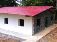 Die Nutzung von recycelten Plastikflaschen als Baustoff ist kein komplett neues Thema, aber das Projekt, das der kanadische Unternehmer Robert Bezeau momentan in Panama in Angriff nimmt, kann ruhigen Gewissens als ambitioniert bezeichnet werden. Auf einer Fläche von 33,5 Hektar soll im panamaischen Dschungel ein ganzes Dorf aus Plastikflaschen entstehen, das aus 90 – 120 Häusern bestehen soll. Plastikflaschen als Baustoff Die erste Phase des Projekts begann bereits Ende 2015. Bisher steht lediglich ein einstöckiges Haus, ein weiteres mit zwei Stockwerken im Stil eines Schlosses ist nahezu fertig gestellt. Bezeau leitete in der Vergangenheit ein inzwischen eingestelltes Projekt zur Wiederverwertung in Boca Del Toro, Panama. Die dort gesammelten Flaschen werden nun für das Projekt verwendet, und die im Umland lebenden Einwohner geben täglich mehr Flaschen ab. Das erste Haus besteht aus insgesamt 10.000 PET-Flaschen, und jedes folgende Haus soll nach Angaben des Teams des “Plastic Bottle Village” aus 10.000 bis 25.000 Flaschen bestehen. Wohnen im Plastic Bottle Village Die Häuser werden gebaut, indem mit einem Metallgerüst die Grundstruktur vorgegeben und diese dann mit Plastikflaschen gefüllt wird. Die Verkabelung läuft zwischen den Flaschen entlang, und eine dünne Schicht Beton schließt die Wände dann ab. Anschließend werden Fenster, ein Dach sowie ein Wassertank hinzugefügt. Nach Angaben des Teams ist die Verwendung von Plastikflaschen gleichzeitig kosteneffizienter und zeitsparender als lokal übliche Baumaterialien und -techniken. Außerdem seien die Häuser so gut isoliert, dass auf die Verwendung von Klimaanlagen verzichtet werden kann. Des Weiteren seien die Gebäude erdbebensicher. Günstig wird es nicht werden, in dem Plastikflaschen-Dorf zu wohnen: Die fertigen Häuser sollen zwischen 149.000 und 300.000 US-Dollar kosten, je nach Größe und Ausstattung. Über die Crowdfunding-Seite GoFundMe werden gleichzeitig Mittel gesammelt, um in dem Dorf ein Bildungszentrum, zusätzliche Dormitories und eine Mensa zu errichten. Bilder: Plastic Bottle Village Teile den Artikel oder unterstütze uns mit einer Spende. Facebook Facebook Twitter Twitter WhatsApp WhatsApp Email E-Mail Newsletter