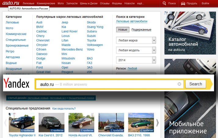 Yandex.ru (engl. Yandex.com) ist Russlands größte Suchmaschine mit über 60% Marktanteil und einem ähnlichen Produktportfolio wie Konkurrent Google. Es gibt eine Statistik-Software, einen Kartendienst, Browser, Werbenetzwerk, Übersetzungsdienst, Videoplattform, Bezahldienste – und viele weitere Features die auch Google besitzt. Doch eines scheint die Russische Suchmaschine nun anders zu machen als Google, Bing und Co. Sie indiziert nicht nur fremde Inhalte und gibt sie auf der eigenen Plattform aus, sondern kauft sich tatsächlich die Content-Provider, wie soeben mit der Gebrauchtwagenseite auto.ru. Auto.ru – Autoplattform mit über 400.000 Listings von Yandex gekauft Für rund 130 Millionen Euro hat der größte Marktplatz für Gebrauchtwagen in Moskau und Top 3 in Russland den Besitzer gewechselt. Yandex erhofft sich einerseits Einnahmen durch die Platzierung ihrer eigenen Werbung auf der Autoseite, als auch eine Verbesserung der eigenen Suche durch die Ergänzung um Kleinanzeigen. Auto.ru stellt auch eigene Auto-News zur Verfügung die ebenfalls von der Suchmaschine verwertet werden. Doch dies ist nicht der erste Erwerb eines Inhalts-Portals. Bereits zuvor hat Yandex die Filmdatenbank KinoPoisk erworben, welche ähnlich aufgebaut ist wie IMDB. Auch hier standen einerseits die Informationen und andererseits die Werbeflächen auf der Seite im Fokus. Welche Strategie hat für Suchmaschinen Zukunft – Kaufen oder einfach übernehmen? Viele Verlage in Deutschland und den USA sind mit Google sehr unzufrieden, da sie der Suchmaschine vorwerfen ihre Inhalte zu klauen und davon zu profitieren, ohne dafür zu bezahlen. Insbesondere Dienste wie Google News stehen hier in der Kritik, da hier User die Inhalte der Webseiten lesen können ohne überhaupt deren Seite besuchen zu müssen. Andererseits profitieren Zeitungen, Kleinanzeigenportale, etc. ja auch davon dass sie in Google gefunden werden und somit Besucher kommen. Durch die Marktmacht von Google bleibt den Verlagen allerdings kaum eine Wahl als in den sauren Apfel zu beissen. In Russland gibt es noch kein so starkes Monopol wie in den USA oder Europa, weshalb sich Yandex für den „ehrenhafteren“ Weg entschieden hat die Portale zu kaufen. Doch leidet darunter dann die „Neutralität“ der Suchmaschine, wenn eigene Inhalte bevorzugt werden? Es bleibt auf jeden Fall spannend, denn Yandex hat nicht nur ein Büro in den USA, sondern bereits auch eines in Deutschland eröffnet. Eventuell gibt es Yandex ja auch bald auf Deutsch. Gespräche mit Netzbetreibern und Portalen sind bereits am laufen! Was meint ihr – Sollten Suchmaschinen Portale kaufen statt nur deren Inhalte zu verwenden? Video: Unternehmenspräsentation Yandex Teile den Artikel oder unterstütze uns mit einer Spende. Facebook Facebook Twitter Twitter WhatsApp WhatsApp Email E-Mail Newsletter