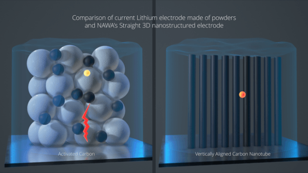 Es klingt zunächst einmal nach einer eher kosmetischen Verbesserung: Französischen Experten ist es gelungen, den Weg, den ein Ion innerhalb eines Akkus zurücklegen muss, von einigen Mikrometern auf wenige Nanometer zu reduzieren. Möglich wurde dies durch den Einsatz von winzigen Kohlenstoffröhrchen, die für eine direkte Verbindung zwischen aktivem Material und Stromkollektor sorgen. Bisher bestehen Elektronen hingegen aus Aktivkohle und einem Gemisch aus Pulvern und Bindemitteln. Der direkte Weg ist den Ionen dadurch oftmals versperrt und sie müssen sich durch eine Art Labyrinth kämpfen. Diese Schwierigkeit konnte nun eliminiert werden. Gelungen ist dies den Forschern des französischen Unternehmens Nawa Technologies. Die dortige PR-Abteilung hat auch gleich einen griffigen Slogan für die Neuentwicklung gefunden: Die Firma spricht von der „schnellsten Elektrode der Welt“. Bild: Nawa Technologies Die Batterien werden leistungsfähiger und leichter Tatsächlich handelt es sich keineswegs um eine nebensächliche Verbesserung. Denn das neue Elektroden-Design bringt gleich eine ganze Reihe an Vorteilen mit sich. So steigt auf der einen Seite die Leistung des Akkus in etwa um den Faktor zehn an. Gleichzeitig reduziert sich auch die Ladezeit. So gehen erste Schätzungen davon aus, dass die Batterien von Elektroautos innerhalb von fünf Minuten von zehn auf achtzig Prozent Ladung gebracht werden könnten. Für die Autodesigner ergeben sich zudem ebenfalls neue Möglichkeiten. Denn die Batterien könnten kompakter und leichter werden. Der direkte Weg für die Ionen hat zudem zur Folge, dass die Batterien rund fünfmal länger halten. Für die Zukunft erwartet Nawa-Chef Pascal Boulanger sogar noch weitere Verbesserungen. So denkt er darüber nach, andere aktive Substanzen zu verwenden. So könnte Lithium beispielsweise durch Silizium ersetzt werden. Ein erster Großabnehmer wurde bereits gefunden Noch handelt es sich dabei aber um reine Gedankenspiele ohne überprüfbares Produkt. Anders sieht dies beim neuen Elektroden-Design aus. Schon im Jahr 2022 sollen erste einfache Produkte damit auf den Markt kommen. Komplexere Varianten, die alle oben genannten Vorteile in sich vereinen, sind dann für das Jahr 2023 geplant. Der französische Batteriehersteller Saft, der unter anderem die Autokonzerne PSA und Peugeot beliefert, wird dann zu den ersten Abnehmern gehören. Unabhängige Experten halten den Ansatz von Nawa für durchaus realistisch. Allerdings ist die Herstellung der kleinen Nanoröhrchen durchaus aufwändig und damit kostenintensiv. Es ist daher fraglich, ob die Technologie tatsächlich für Massenprodukte geeignet ist. Nawa-Boss Boulanger will diesen Punkt allerdings nicht gelten lassen und verweist auf ein preisgünstiges Verfahren zur Gläserbeschichtung. Via: New Atlas Teile den Artikel oder unterstütze uns mit einer Spende. Facebook Facebook Twitter Twitter WhatsApp WhatsApp Email E-Mail Newsletter