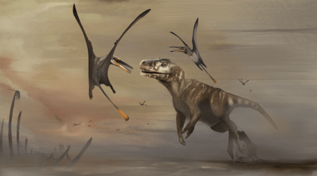 Auf der Insel Skye vor dem schottischen Festland gelang PaläontologInnen ein spektakulärer Fund: Im Rahmen von Grabungen fanden sie Relikte des größten Flugsauriers des Jurazeitalters. Das Fossil ist 170 Millionen Jahre alt und war zum Zeitpunkt seines Todes noch nicht voll ausgewachsen. Dennoch wies das Tier eine Flugelspannweite von 2,50 Meter aus, was für einen jungen Flugsaurier erstaunlich viel ist. Zudem ist das Fossil nahezu perfekt konserviert. Grafik: Natalia Jagielska Bisher unbekannte Art Flugdinosaurier sind die größten Lebewesen, die jemals in der Lage waren zu fliegen. Mehr als 150 Millionen Jahre lang dominierten sie weltweit den Himmel. In dieser Zeit brachte die Evolution Flugsaurier in vielen Arten und Größen hervor. Neben gigantischen Sauriern wie dem Quetzalcoatlus mit bis zu zwölf Metern Flügelspannweite gab es auch frühe Pterosaurier, die kaum die Größe eines Vogels erreichten. Aus der Anfangszeit der prähistorischen Fluggeschöpfe ist indes nicht viel bekannt, da die hohlen Knochen der Tiere mit der Zeit zerstört wurden und es daher kaum Fossilien gibt. Der Fund des Teams rum um Natalia Jagielska von der University of Edinburgh ist deshalb umso interessanter. Die ForscherInnen fanden das Fossil im Kalkstein einer flachen Felsformation in der Gezeitenzone der Landzunge Brothers Point. Diese liegt im Osten der Insel. Bei dem Fossil handelt es sich sozusagen um einen Zufallsfund: Ein Stück des versteinerten Kieferknochens ragte aus dem Kalk heraus und zog Aufmerksamkeit auf sich. Nach der Extraktion aus dem Kalkstein wurde der Fund dann im Labor der University of Edinburh freigelegt, gesäubert und unter Einsatz eines Computertomografen ausgiebig untersucht. Das Fossil konnte auf eine Zeit vor 170 Millionen Jahren datiert werden, womit es aus dem mittleren Jura stammt. Es handelt sich um eine bisher noch unbekannte Art der Pterosaurier – die FoscherInnen tauften die Art auf den Namen Dearc sgiathanach, was auf gälisch „geflügeltes Reptil“ bedeutet. Flugsaurier im Jura waren größer als gedacht Das Ungewöhnliche an dem Fund ist, dass Dearch sgiathanach im Vergleich zu anderen Funden von Pterosauriern aus dieser Zeit relativ groß. Obwohl das Tier noch nicht voll ausgewachsen war, lag seine Flügelspannweite bereits zwischen 1,90 und 3,80 Metern – das entspricht etwa der Größe eines Albatros und macht die Art zu den größten Pterosauriern, die aus dem Jura bekannt sind. Das ist auch deshalb bemerkenswert, weil das Fossil zur Familie der Rhamphorhynchidae gehörte, einer Gruppe der Langschwanz-Pterosaurier. Diese waren bereits im Oberjura wieder ausgestorben und galten als weniger weit entwickelt als die späteren Kurzschwanz-Pterosaurier, die in der Kreidezeit vorkamen. „Das Fossil verrät uns, dass die Flugsaurier schon viel früher größer wurde als wir dachten – lange vor der Kreidezeit„, so Steve Brusatte von der University of Edinburgh, Seniorautor des Papers. Dies ist ein Indiz gegen zwei gängige Hypothesen aus der Paläontologie. Zum einen ging man bisher davon aus, dass erst die Kurzschwanz-Flugsaurier weit genug fortgeschritten waren, um das Fliegen zu lernen. Zum anderen besagt eine weitere Hypothese, dass die Pterosaurier erst größer wurden, als mit Urvögeln eine Konkurrenz aufkam. „Die Ausbreitung der Vögel könnte die Flugsaurier des späten Jura und der Kreidezeit in ökologische Nischen von immer größeren Körpermaßen getrieben haben„, so das Team. Das nun gefundene Fossil zeigt allerdings, dass Flugsaurier bereits vor der Verbreitung von Vögeln an Größe zulegten. Extrem gut erhaltenes Fossil Das Fossil von der Isle of Skye weist noch eine weitere Besonderheit auf: Es ist in einem außergewöhnlich guten Zustand. „Pterosaurier sind nur extrem selten so gut konserviert und dann meist nur in Gesteinsformationen in China und Asien„, so Jagielska. Oft werden die Fossilen solcher Tiere zudem durch den Druck des Gesteins um sie herum stark deformiert. Bei dem gefundenen Fossil ist dies nicht der Fall. „Unser Skelett ist in nahezu perfektem Zustand und fast vollständig. Seine scharfen, für den Fischfang optimierten Zähne haben sogar noch ihren Zahnschmelzüberzug – als wäre Dearc noch vor wenigen Wochen lebendig gewesen„, zeigt Jagielska sich begeistert. via University of Edinburgh Teile den Artikel oder unterstütze uns mit einer Spende. Facebook Facebook Twitter Twitter WhatsApp WhatsApp Email E-Mail Newsletter