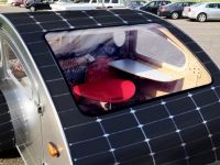 Die Vorstellung flexible Solarzellen einfach auf den Trailer, den Wohnwagen oder das Dach kleben zu können, hat durchaus seinen Reiz. Das amerikanische Unternehmen Sunflare hat einen wesentlichen Schritt in diese Richtung gewagt und eine ultra dünne Solarfolie entwickelt. Die wenige Mikrometer dicke und federleichte Folie ist mit einem speziellen doppelseitigen Klebeband bestückt und hält somit an fast jeder Oberfläche. Effiziente Sunflare-Solarfolie dank Capture 4 Technologie 16 Jahre hat die Entwicklung der Sunflare-Solarfolie gedauert. Nun wird das Produkt in der Industrie und beim Militär eingesetzt. Auch eine Serienproduktion für den Konsumenten-Markt soll in Zukunft gestartet werden. Die Solarzellen werden aus Kupfer, Indium und Gallium gefertigt. Bei der Produktion legt Sunflare großen Wert darauf, dass das verwendete Wasser wieder gereinigt wird. Zudem wird auf den Einsatz von toxischem Cadmium und Blei verzichtet. Den Entwicklern zufolge seien die neuen Solarfolien von der Ausbeute her sogar herkömmlichen Solar-technologien überlegen. Trotz 65 Prozent weniger Gewicht, generieren die Sunflare-Solarfolien 10 Prozent mehr Energie als alternative Panels. Im Laufe der Zeit hat Sunflare die Folie dermaßen optimiert können, dass diese einmal weniger als 1,07 US-Dollar pro Watt kosten soll. Da auf ein Glas-Substrat verzichtet wird, ist die Folie sehr flexibel einsetzbar, so dass überall da saubere erneuerbare Energie generiert werden kann, wo herkömmliche Solarpanele nicht möglich sind. Auf der Website schreibt Sunflare, dass die flexiblen Solarzellen in bereits bestehende Strukturen oder auch in einzigartige Architektur integriert werden können. Das umweltschonende Herstellungsverfahren nennt Sunflare Capture4 Technologie. Im letzten Jahr hat Sunflare die erste Marge bereits verkauft. In diesem Sommer folgten weitere Aufträge. Vorrangig soll nun erstmal die Industrie mit der Hochleistungsfolie versorgt werden. Neben dem Militär haben auch Autofertiger Interresse an der neuen Technologie. Als Privatkunde kann die Solar-Folie bisher noch nicht erworben werden. Sunflare bietet allerdings die Kontaktaufnahme per Mail an und sendet bei Bedarf weitere Informationen. Teile den Artikel oder unterstütze uns mit einer Spende. Facebook Facebook Twitter Twitter WhatsApp WhatsApp Email E-Mail Newsletter