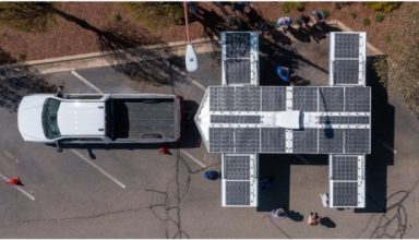 Wasserstoff-Solar-Kraftwerk als Anhänger: Grüne Energie wird mobil Ein mobiles Kraftwerk in Form eines Anhängers, das sich mit dem Gabelstapler verladen lässt und sogar hubschraubertauglich ist. Es gelangt an abgelegene Orte, wo es als Tankstelle für E-Fahrzeuge dient – und beinhaltet sogar ein kleines Büro, das energetisch mit abgesichert ist. Der Strom fließt nicht nur bei Sonnenschein, sondern auch nachts und bei schlechtem Wetter. Ein ausgeklügeltes System macht’s … Den ganzen Artikel lesen Facebook Facebook Twitter Twitter WhatsApp WhatsApp Email E-Mail Newsletter