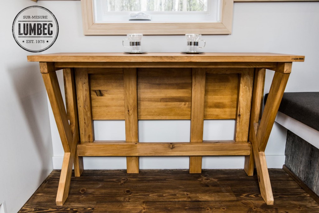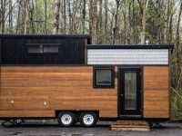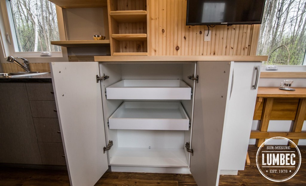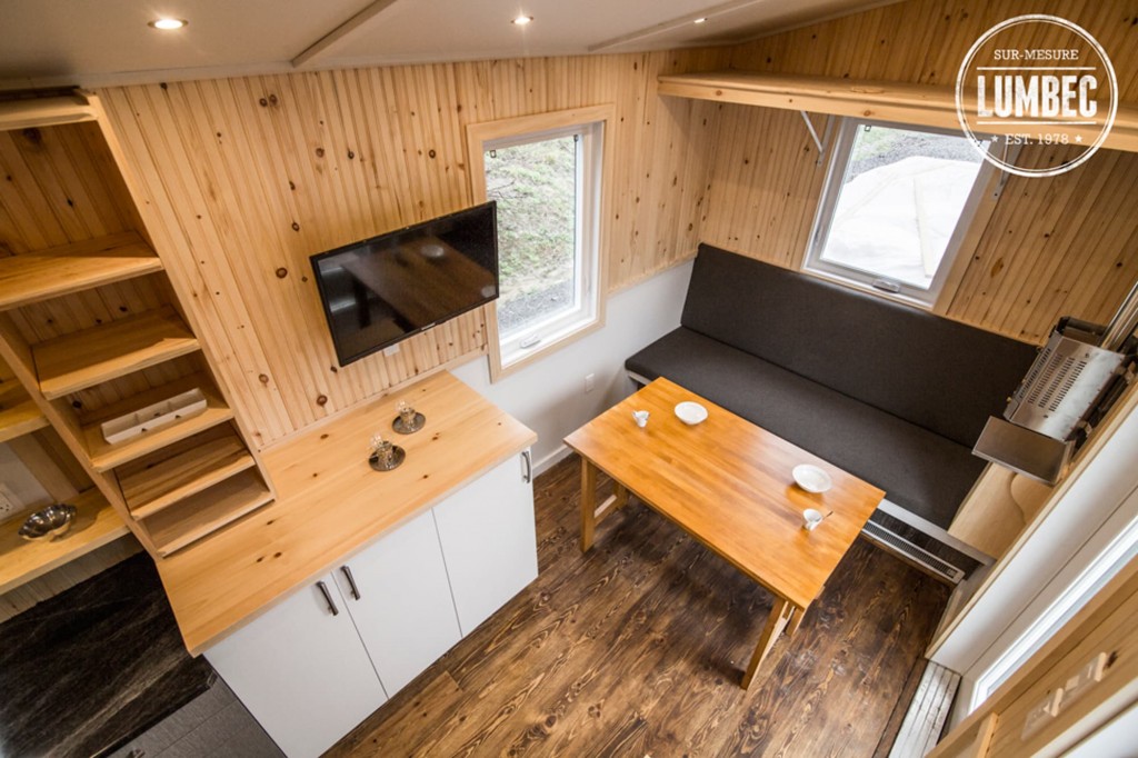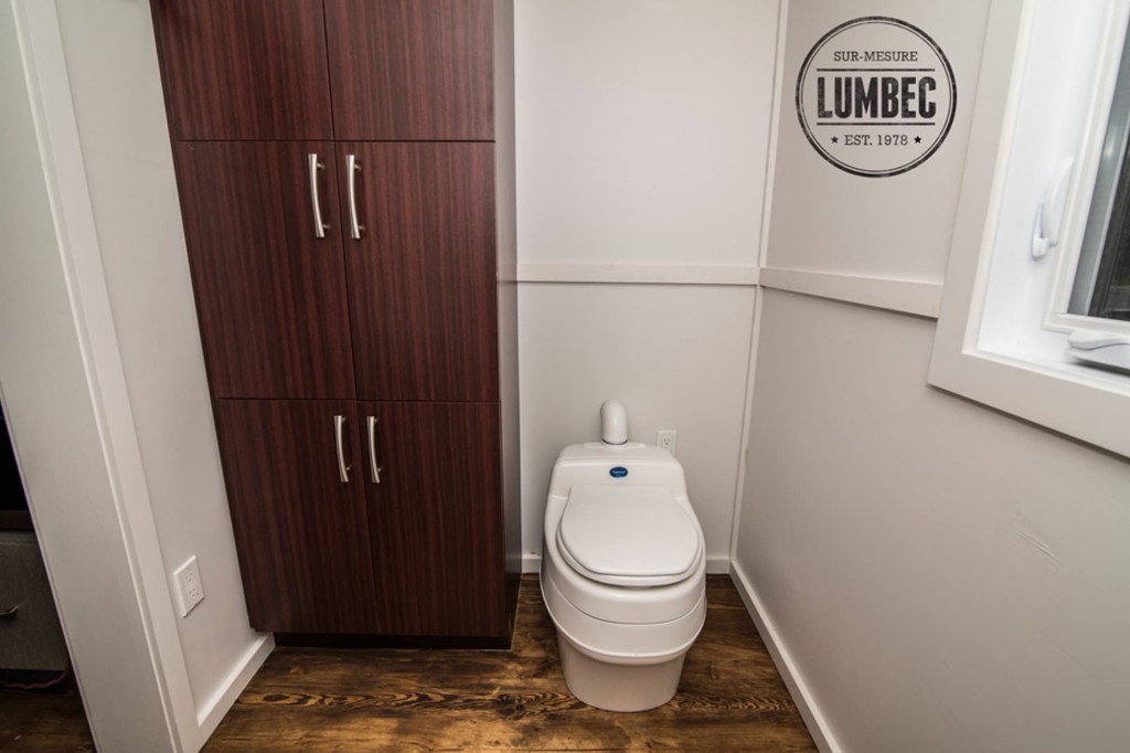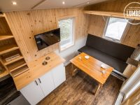 Tiny Houses legen ihren Fokus eindeutig auf Downsizing und Praktikabilität. Manchmal bleibt dabei der Komfort auf der Strecke. Das TH2 Tiny House beweist, das Komfort und kompakte Bauweise sich nicht ausschließen. Das 7,3 Meter lange Heim im Wohnwagenformat hat eine relativ große Küche, einen großzügigen Wohnbereich und sogar eine kleine Badewanne. Tiny House mit Wohlfühlfaktor Hergestellt wird das TH2 Tiny House von der Firma Lumbec aus Quebec. Das Unternehmen ist relativ neu auf dem Markt für Tiny Houses, baut aber seit 1978 Schuppen und und Pavillons, kann also durchaus auf etwas Erfahrung zurückblicken. Da Lumbec bereits ein Tiny House herstellte, liegt die Vermutung nahe, dass TH2 für “Tiny House 2” steht. Die Konstruktion ist aus Kiefern- und Zedernholz sowie Stahl. Für die Isolierung sorgt eine Schicht aus Bauschaum. Bei der Innenausstattung haben die Konstrukteure Wert auf hohe Qualität gelegt. Der Wohnbereich wird von einer Couch mit ausklappbaren Tisch beherrscht und hat als besonderes Feature einen Holzofen. Wo Platz für Stauraum ist, wird dieser auch geboten. Die Küche bietet einen Kühlschrank in Normgröße, einen kleinen Gefrierschrank, einen Induktionsherd und eine hochwertige Mikrowelle. Neben dem Holzofen sorgt ein 1500 Watt starker Elektroheizer für die im kanadischen Klima oft benötigte Wärme. Das Tiny House verfügt außerdem über ein System zum Wasser-Recycling. Im hinteren Bereich folgt das Badezimmer mit einer Kompost-Toilette und eine Besonderheit, die für ein Tiny House ein echter Luxus ist: Eine 1,5 Meter lange Badewanne mit Dusche. Über eine Treppe gelangt man in den Schlafbereich, der von einem Queen Size Bett beherrscht wird und zusätzlichen Stauraum bietet. Der Verkaufspreis für das TH2 ist nicht bekannt, Interessenten müssen sich an den Hersteller wenden. Quelle: TheTinyHouseLumbec Teile den Artikel oder unterstütze uns mit einer Spende. Facebook Facebook Twitter Twitter WhatsApp WhatsApp Email E-Mail Newsletter