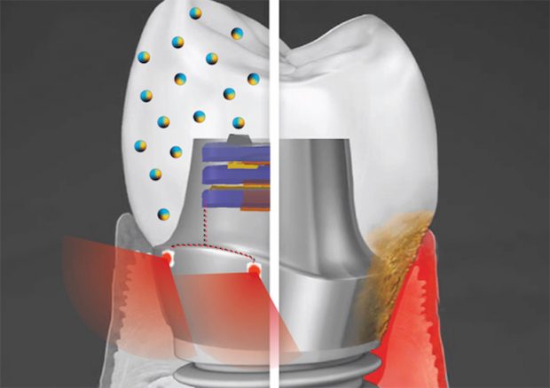 Ein Zahnimplantat, das mit einer antibakteriellen Oberfläche ausgestattet ist und zudem das Zahnfleisch vor Entzündungen schützt, könnte die Zahnersatztechnik revolutionieren. Es handelt sich um eine Krone, die auf einen implantierten Stift gesetzt wird. Die Oberfläche enthält Bariumtitanat-Nanopartikeln, die eine negative Oberflächenladung erzeugen, die Bakterien, deren Oberfläche ebenfalls negativ geladen ist, abprallen lässt. Zum High-tech-Produkt wird die Krone wegen eines eigebauten Piezokristalls. Der erzeugt elektrischen Strom, wenn er bei Kauen belastet wird. Er soll genutzt werden, um eine ebenfalls integrierte Leuchtdiode zu versorgen, die eine Fototherapie möglich macht, also Entzündungen durch die Bestrahlung mit Licht einer bestimmten Frequenz zu bekämpfen. Die schlaue Zahnkrone haben Forscher an der University of Pennsylvania in Philadelphia entwickelt. Bakterien zerstören Implantate oft vorzeitig Obwohl die heute eingesetzten Implantate für ein paar Jahrzehnte gedacht sind, versagen sie in der Praxis oft viel früher und müssen auf Grund von Zahnfleischproblemen oder Entzündungen ersetzt werden. Die neue Technik zielt darauf ab, die häufigste Ursache des Implantatversagens – Bakterien – zu bekämpfen. Bakterielle Biofilme, die sich auf Implantaten (und echten Zähnen) ansammeln, wirken sich negativ auf die Zahnfleischgesundheit aus, weil sie Brutstätten für zerstörerische Bakterien sind. Die Forscher haben die Implantate mit dem Bakterium Streptococcus mutans getestet und gezeigt, dass sich kein Biofilm bildet. Fototherapie schützt das Zahnfleisch „Wir wollten ein Implantatmaterial entwickeln, das dem Bakterienwachstum für eine lange Zeit widerstehen kann „, sagte Geelsu Hwang, der an der Entwicklung beteiligt war. Um auf Nummer Sicher zu gehen baute „Diese Technik kann eine Vielzahl von Gesundheitsproblemen beheben“, sagt Hwang. Eine Versorgung mit einer Batterie verwarf das Team, weil sie nicht austauschbar ist, wenn der Zahn implantiert ist. Deshalb setzen wir auf ein piezoelektrisches Material, das elektrische Energie aus natürlichen oralen Bewegungen erzeugen kann, um Licht für die Fototherapie zu erzeugen“, so Hwang. „Wir haben festgestellt, dass sie das Zahnfleischgewebe erfolgreich vor bakteriellen Herausforderungen schützen kann.“ via Teile den Artikel oder unterstütze uns mit einer Spende. Facebook Facebook Twitter Twitter WhatsApp WhatsApp Email E-Mail Newsletter